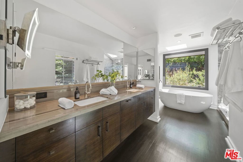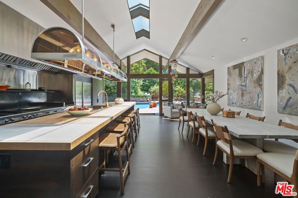 Looking for a 6 month lease....Positively idyllic, this one-of-a-kind Rustic Canyon Santa Monica residence blends historic charm with modern sophistication just moments from Will Rogers beach. Step inside and you're greeted by soaring ceilings, wide-open spaces, and natural light pouring in from skylights and floor-to-ceiling windows. A dramatic double-sided river rock fireplace anchors the semi-open layout, seamlessly connecting the formal living and dining areas. The kitchen is a true standout, featuring a professional-grade six-burner stove, double ovens, a griddle, and a lava rock gas grill, all centered around a large dine-in island with striking custom lighting. The private primary suite serves as a serene sanctuary, tucked away from the other bedrooms, with a newly reimagined spa-like bath showcasing a marble walk-in shower, a freestanding double-sized tub, twin vanities, and multiple skylights bathing the space in natural light. Two additional bedrooms offer peaceful garden views, one opening to the backyard through French doors. A cozy library with its own powder room and an office provide flexibility for work, rest, or retreat. Outside, the lush backyard and sparkling pool are framed by mature fig, avocado and redwood trees, native landscaping and a grassy lawn, creating a truly magical setting. Oozing warmth, soul, and storybook appeal, the home's rustic log exterior - originally sourced from early Hollywood movie sets - pays homage to the neighborhood's rich history as part of the storied "Uplifter's Ranch." The 17sf flat lot offers street-to-street access across from Rustic Canyon Park, complete with tennis courts, a nursery school and a community center for family-friendly activities. Travel further north on Latimer and the neighborhood culminates in a charming cul-de-sac with a bridge and creek. This unique, historic property embodies rustic elegance and relaxed luxury in one of the most enchanting, hidden pockets of Los Angeles. This home is more than a residence, it's a lifestyle.