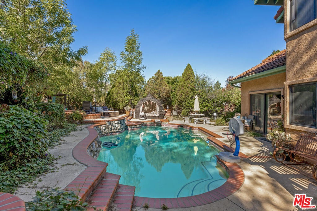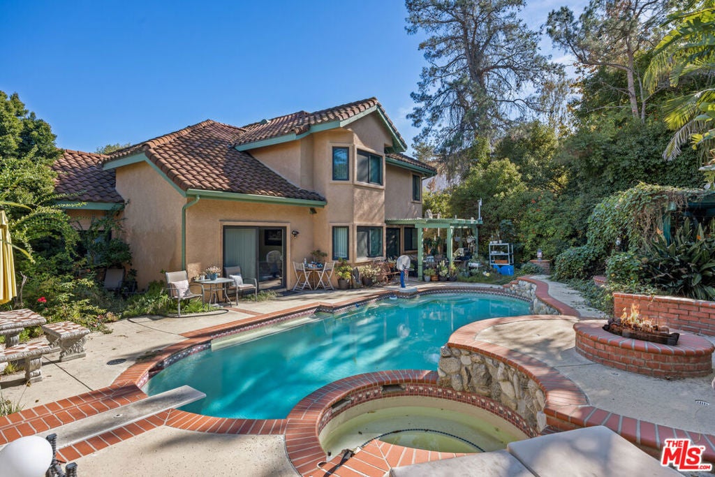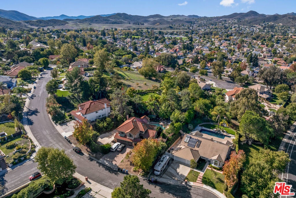 Nestled in a quiet, rural enclave of Newbury Park, this two-story 4-bedroom, 3-bath home offers 2,600 square feet of refined living on a sprawling .56-acre lot. The property showcases stunning city views and exceptional outdoor amenities, including a sparkling pool, two spas, a fountain, and a tranquil stream bordering a massive undeveloped area. Generous interior spaces are designed for comfort and versatility, complemented by a three-car garage and a setting that feels worlds away...yet moments from town conveniences.