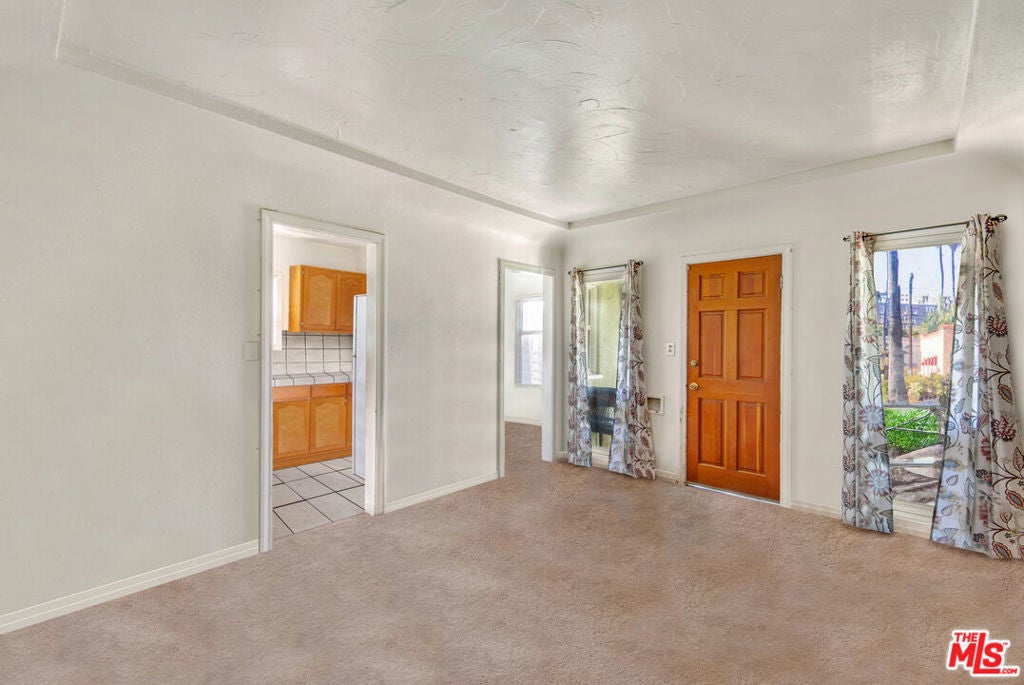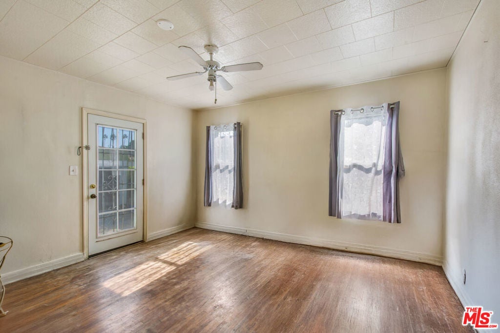 An investment opportunity in a well-established Los Angeles neighborhood, this classic duplex has been lovingly maintained and owned by the same owner for more than thirty years. Fully occupied with long-term tenants, the property will not be delivered vacant. The new owner will take title subject to existing tenants' rights. This is a Trust Sale with no Court Confirmation required. Set back from the street behind an ample front yard, the property welcomes you with a charming front porch and a warm, traditional facade. The front unit offers two bedrooms and one bath, a comfortable living area, and an eat-in kitchen with well-kept interiors that reflect true pride of ownership. The rear unit features one bedroom and one bath, a light-filled kitchen with breakfast area, and carpeted flooring. A generous backyard provides outdoor space for gardening or leisure, and a detached two-car garage offers storage or parking flexibility. Conveniently located near transportation corridors, local services, parks, and schools, this income-producing asset is an opportunity for an investor or owner seeking dependable cash flow in a prime Los Angeles location.