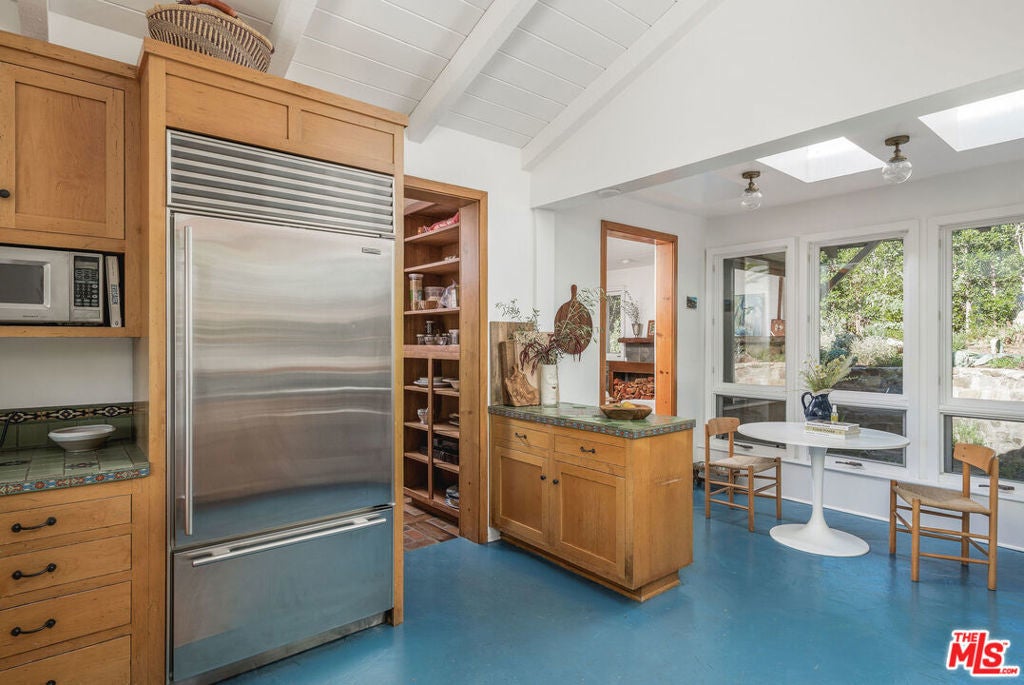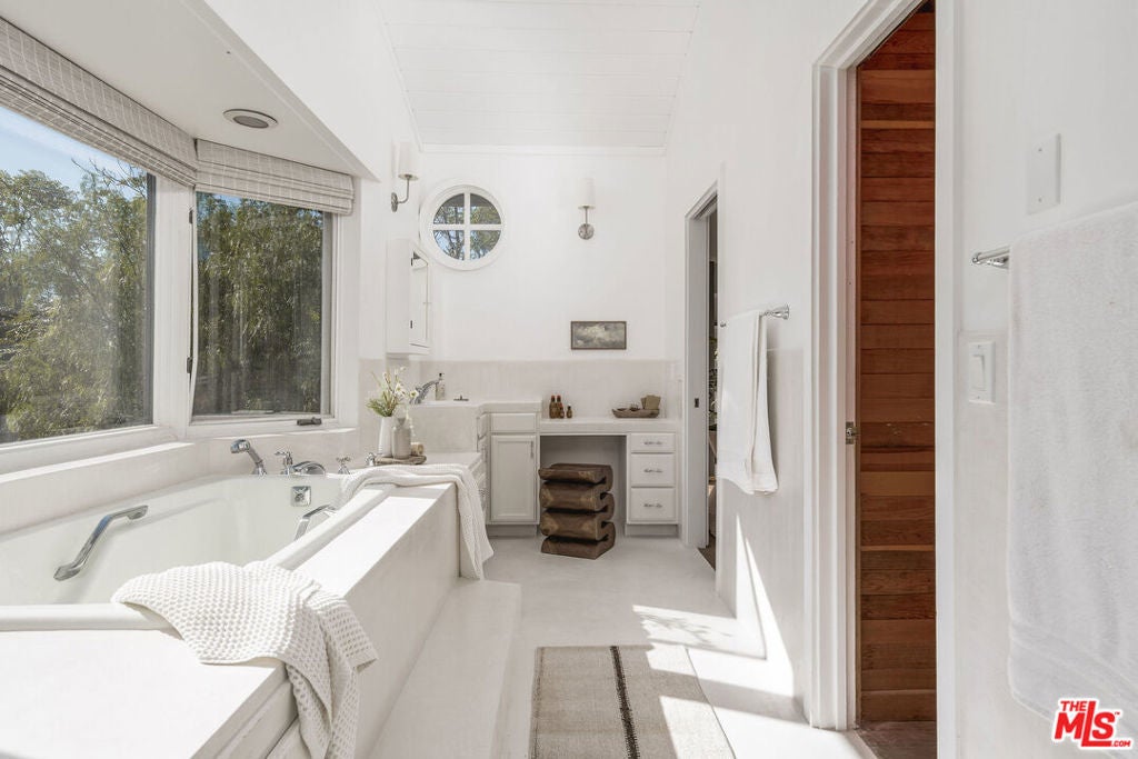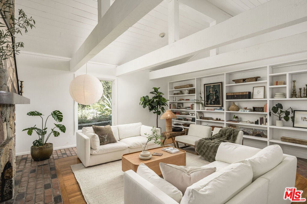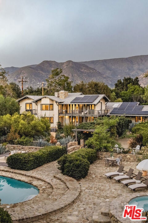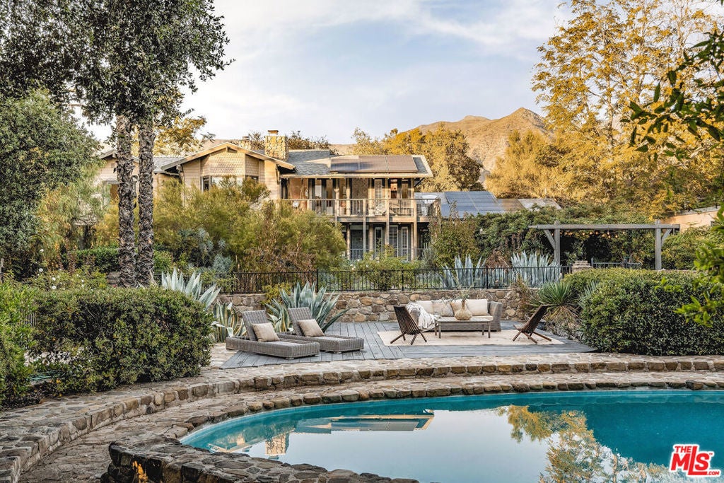Set against Ojai's storied East End backdrop, 4158 Grand Avenue is a soulful five-bedroom retreat where timeless design and natural beauty converge. Three of the home's bathrooms have just been updated with hand-troweled plaster finishes and new flooring - an understated, contemporary refresh that feels chic yet seamlessly in tune with the home's original character. Hidden behind citrus groves and mature oaks, the property captures the essence of relaxed California living-warm, grounded, and effortlessly elegant. Inside, handcrafted stone fireplaces, vaulted ceilings, and the rich texture of brick-and-wood floors create a sense of comfort and continuity throughout. Sunlight fills each room, highlighting thoughtful architectural details and inviting spaces designed for connection and calm. The kitchen blends vintage charm with everyday functionality, opening toward the gardens and surrounding greenery. Five fireplaces anchor the home's living and sleeping spaces, including two in the serene primary suite, where a private sitting room, dual baths, view decks, and cedar sauna form a true sanctuary. Throughout the home, French doors and picture windows frame lush garden views, drawing the outdoors in and emphasizing the property's sense of seclusion and harmony. Four of the five bedrooms include en-suite baths, offering comfort and privacy for family and guests alike. Outdoors, the estate's saltwater pool, spa, and wisteria-covered pergola unfold amid native landscaping, fruit trees, and meandering paths. Beyond the main residence, a detached three-car garage with art studio, laundry, and full bath expands the home's versatility, while a separate one-bedroom guest house - privately tucked at the rear of the property - offers a welcoming space for guests or creative pursuits. Located just minutes from Ojai's farmers market, trailheads, and celebrated local restaurants, 4158 Grand Avenue offers an exceptional balance of privacy, comfort, and connection - an Ojai sanctuary that feels both timeless and alive.