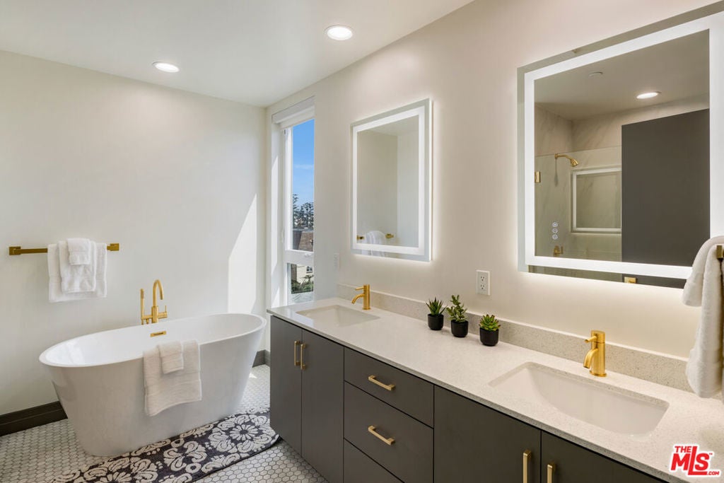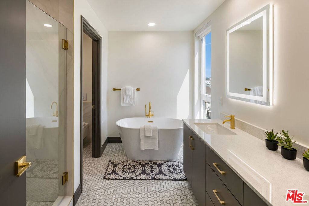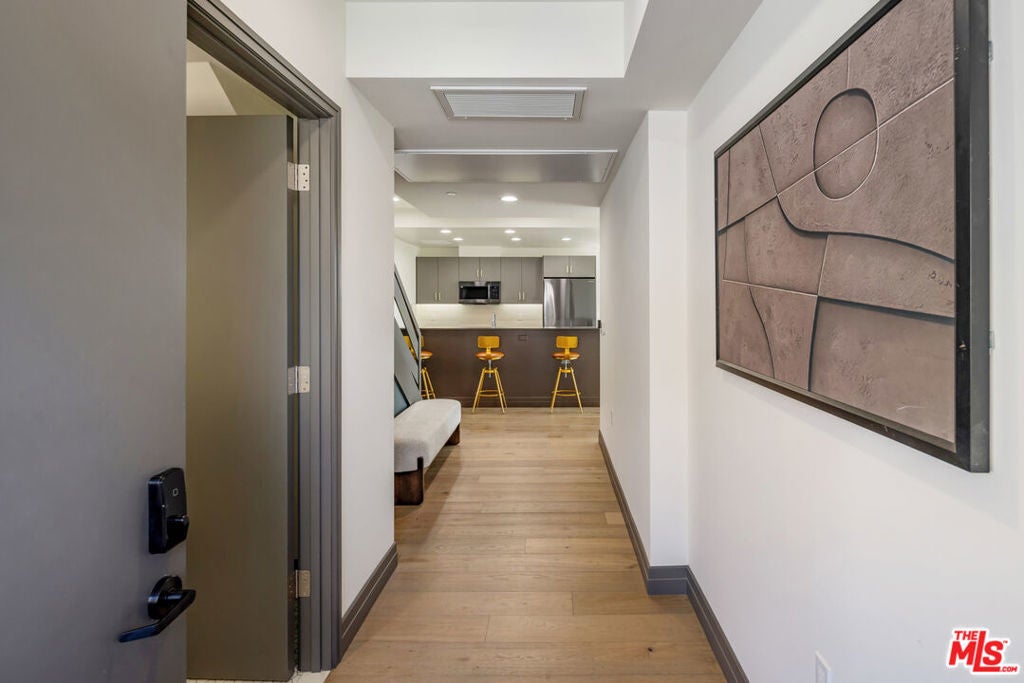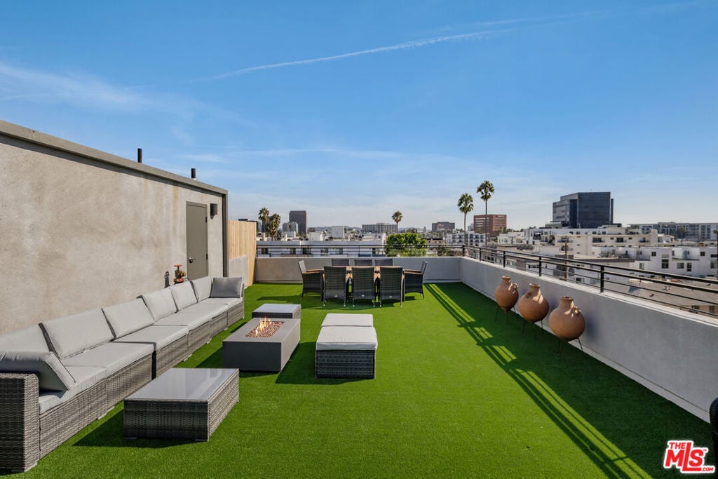 Welcome to Orlando 8, a brand-new 2025 built luxury residence in the heart of Los Angeles-offering the rare opportunity to live in a modern architectural masterpiece with townhouse-style living and a private rooftop deck. This unit spans three levels and features a thoughtfully designed layout with 2 bedrooms, 2.5 bathrooms, and approximately 1,428 square feet of light-filled living space. The main level showcases a bright open-concept living area with wide-plank wood floors, recessed lighting, and a sleek chef's kitchen with quartz countertops, stainless steel Samsung appliances, and bar seating for casual dining. Upstairs, you'll find two spacious bedrooms, each with its own full bathroom, designed for comfort and privacy. The primary suite includes a spa-like bath with dual vanities and craftsman tile finishes. Crowning the home is an incredible private rooftop deck with breathtaking panoramic views, a true entertainer's dream and an exceptionally rare feature in this neighborhood. Whether for lounging, dining, or hosting under the stars, this private rooftop space redefines outdoor living.Additional highlights include in-unit laundry, two secured parking spaces, central air and heat, and a private, direct-access stairway connecting all levels, giving the home the feel of a luxury townhouse. Perfectly situated near Melrose, Beverly Grove, and West Hollywood's best shopping, dining, and nightlife, this residence combines architectural design with an unbeatable location. Experience the very best of contemporary living at Orlando 8 where design, comfort, and lifestyle come together seamlessly.