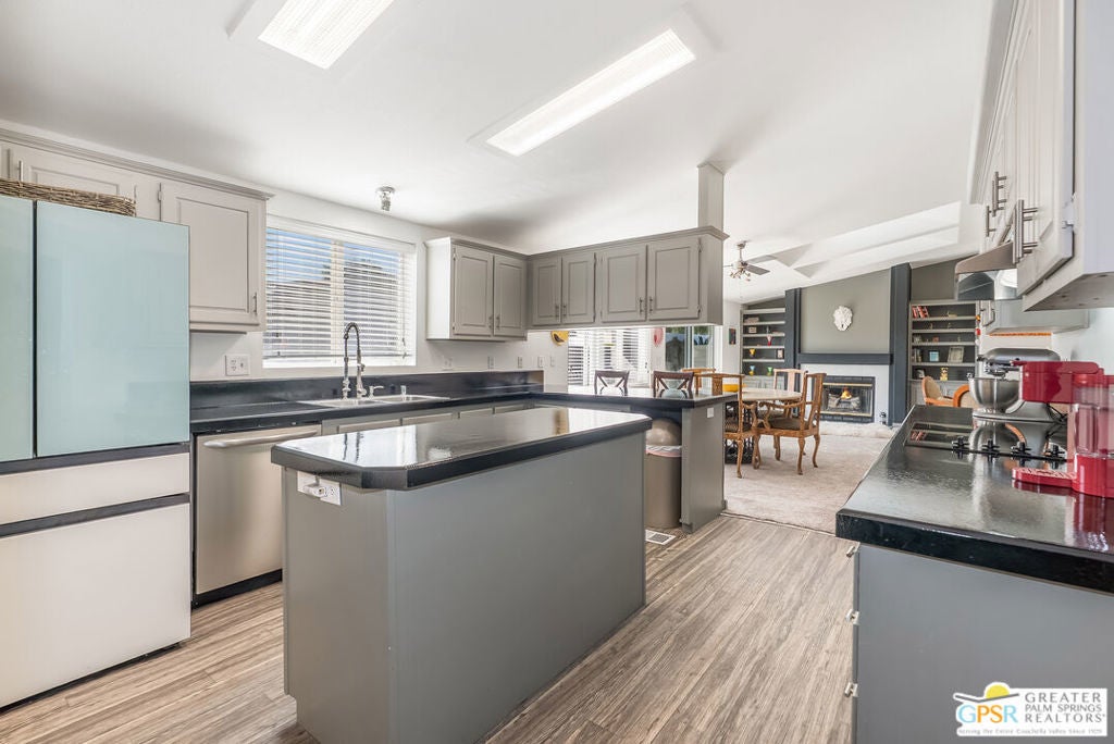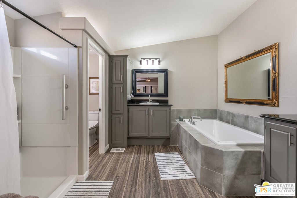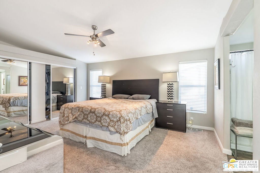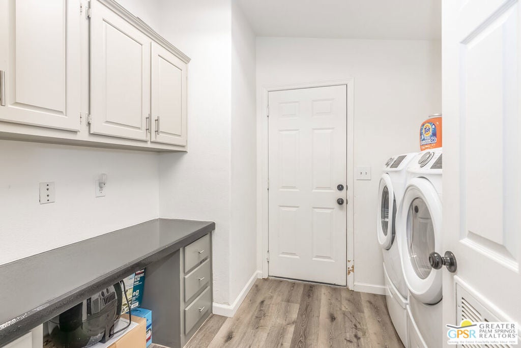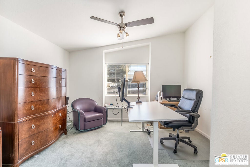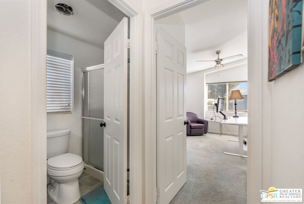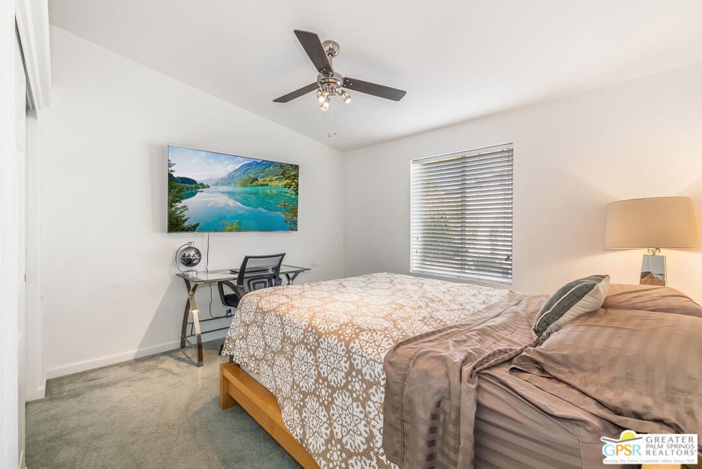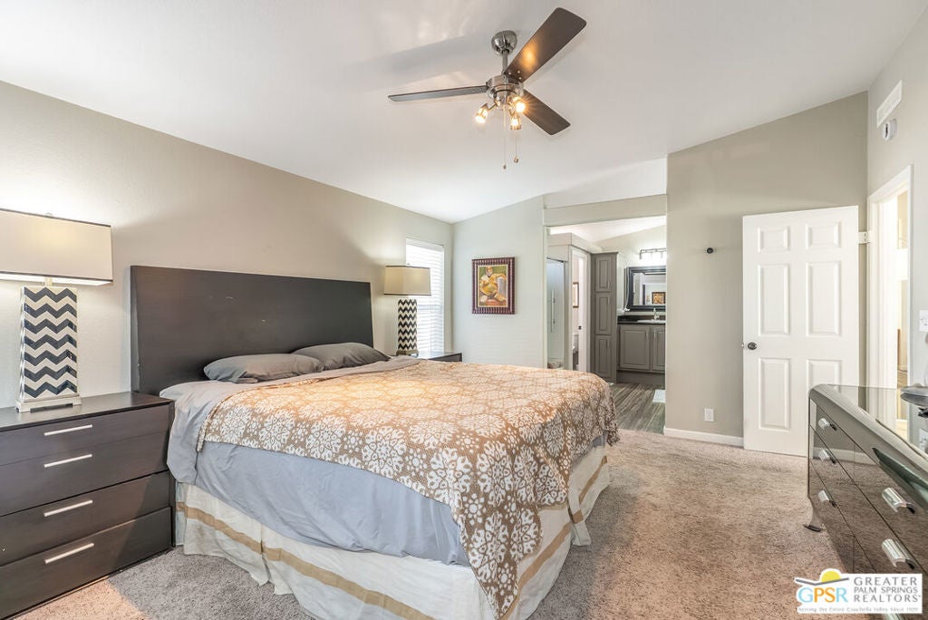 What's behind the chartreuse door? This home is an entertainers paradise with an open-concept layout spanning nearly 2,200 square feet. In the kitchen you will find stainless steel appliances and endless counter space that flows into the expansive living and dining room with vaulted ceilings in a home flooded with natural light. You will find no shortage of areas to relax, entertain, or even enjoy your private bar when guests are over. The oversized master suite is your sanctuary to rejuvenate, with plenty of distance from the guest rooms for added privacy. Outside you have a private, walled-off yard with your own private pool and spa. Making all this even better is the fact you have 35 solar panels helping to utilize our abundant desert sunshine and keep your monthly electrical payments at a minimum. You also have an attached two-car garage with laundry inside, new water heater, and the HVAC system is only 2 years old. The home is on a permanent foundation with a 433a certificate, so it qualifies for conventional lending options. And when you thought it couldn't get any better, this incredible home is located in the guard-gated community of Vista Montana. A friendly, social community for those ages 55 and better. The community has a clubhouse with onsite property management, resort-style pools and spas, a billiard room, card room, sauna, fitness room, a designated dog area, and plenty of beautiful greenery to enjoy on your morning walks. This is the home you've been waiting for. Schedule a tour today, and come see your new desert paradise!