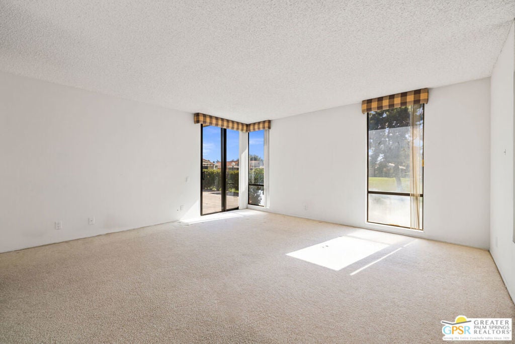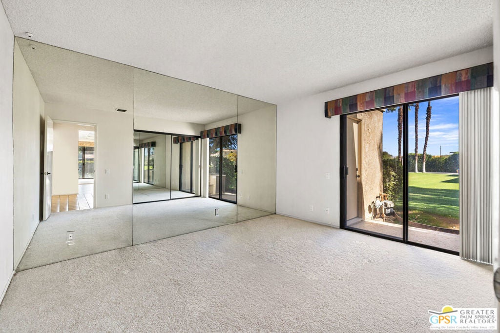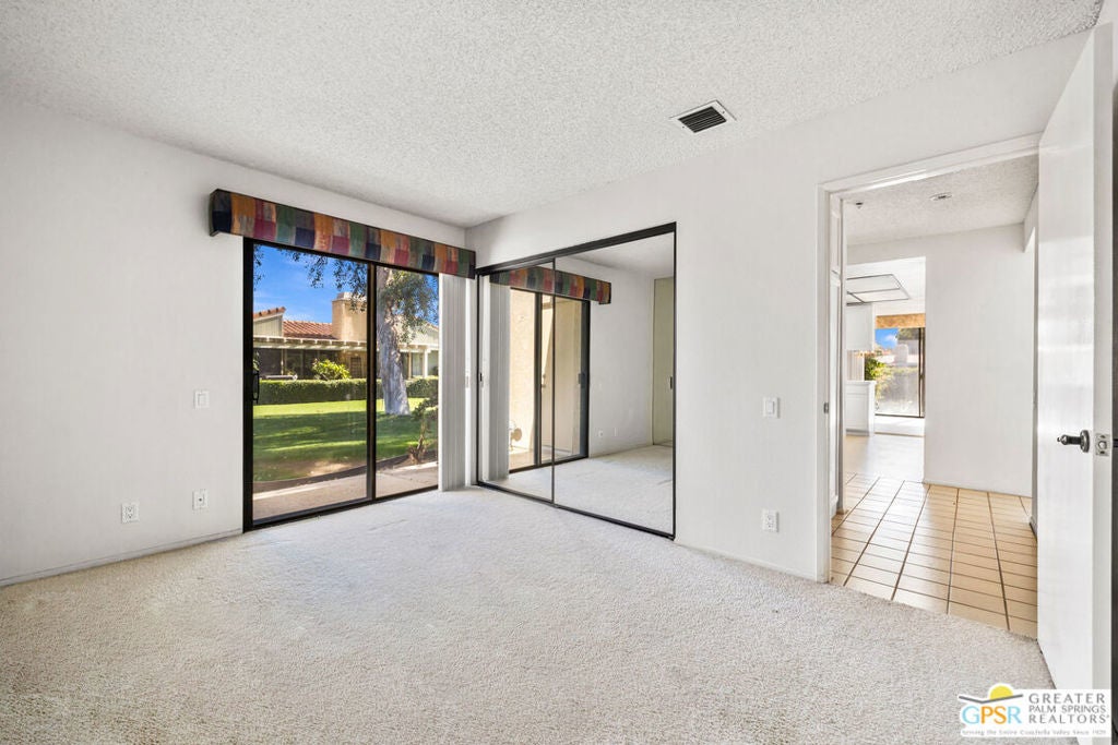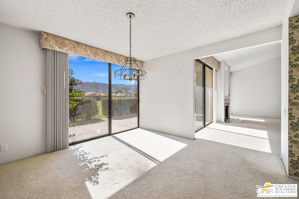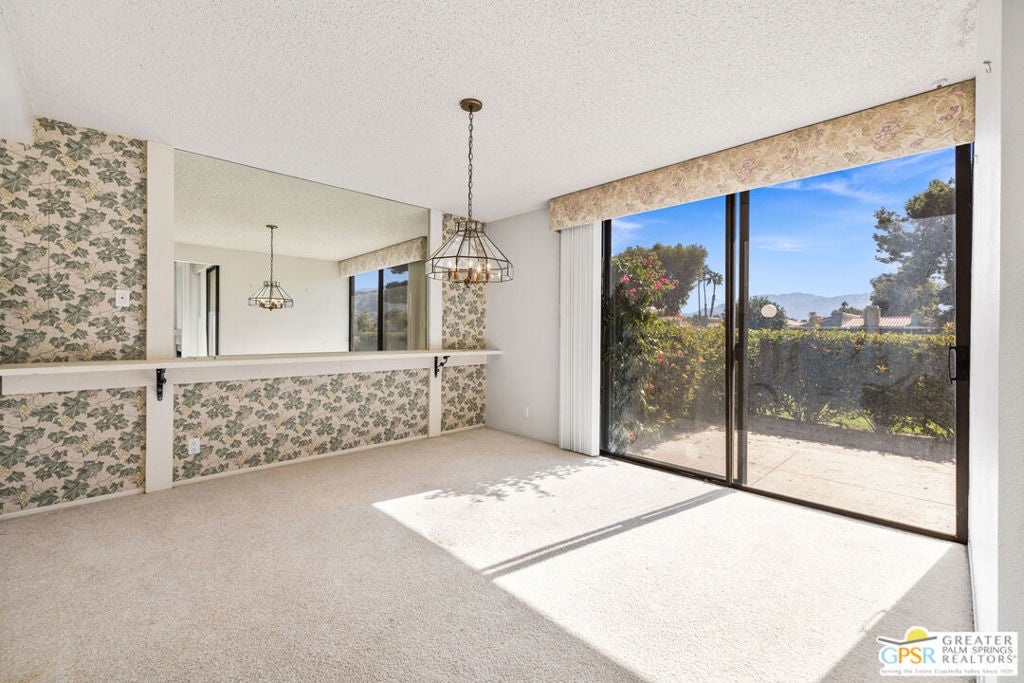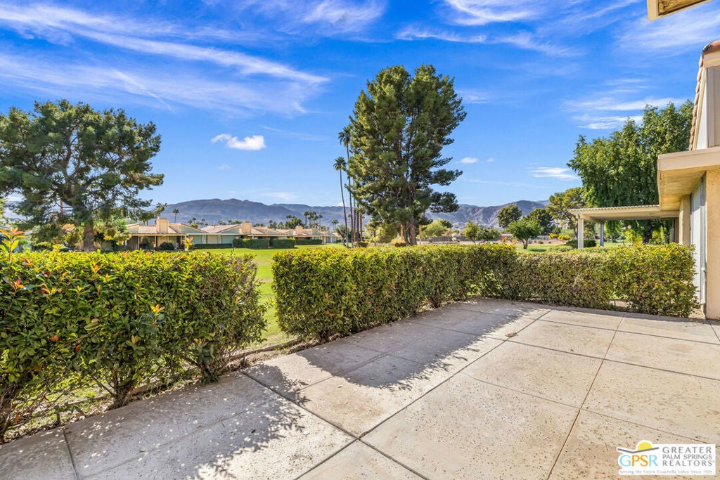 MILLION DOLLAR VIEWS set the stage on Roxbury Drive for this single-level Rancho Mirage home in gated Wilshire Palms. Low-density living, wide-open green spaces, swaying palms, and quiet pools define the community's relaxed elegance. Tennis and pickleball courts add to the appeal, along with easy access to the best of South Rancho Mirage and nearby El Paseo. The living room features a vaulted beamed ceiling, fireplace, and wet bar framed by two patios that invite the outdoors in. The dining room takes in those stunning views, while the large kitchen is light and bright with generous cabinet space. Bedrooms enjoy excellent separation, including a spacious ensuite primary with two closets, separate tub and shower, and mountain views here as well. Guest Bedroom Two opens to the front courtyard, while Guest Bedroom Three opens to the side yard with an adjacent full bathan ideal "mother-in-law suite" setup. A community-wide exterior improvement project on the homes was recently completed and paid in full, a major benefit for new owners. Bring your vision and add your special touch to make this one shine. On Fee Land (you own it) with relatively low HOA fees.