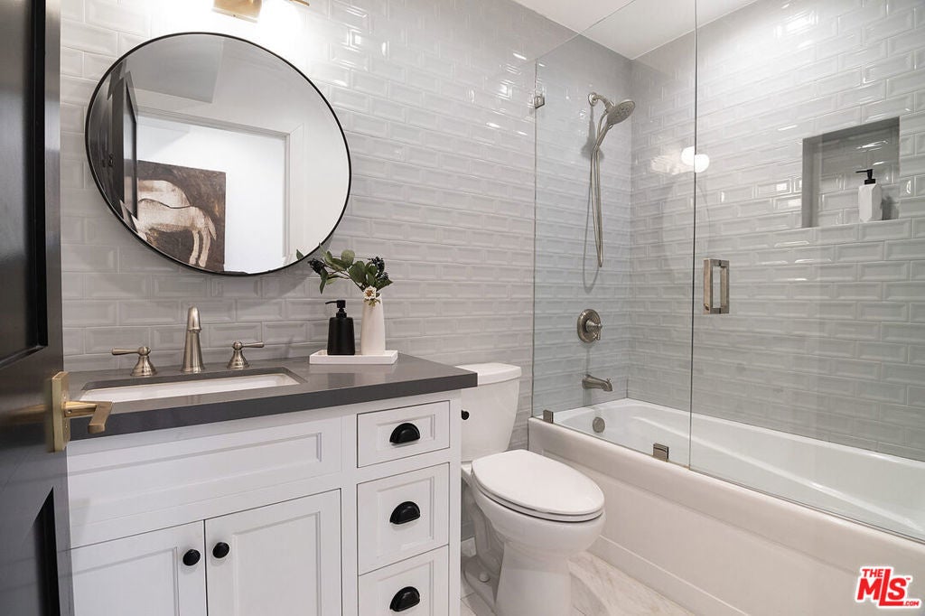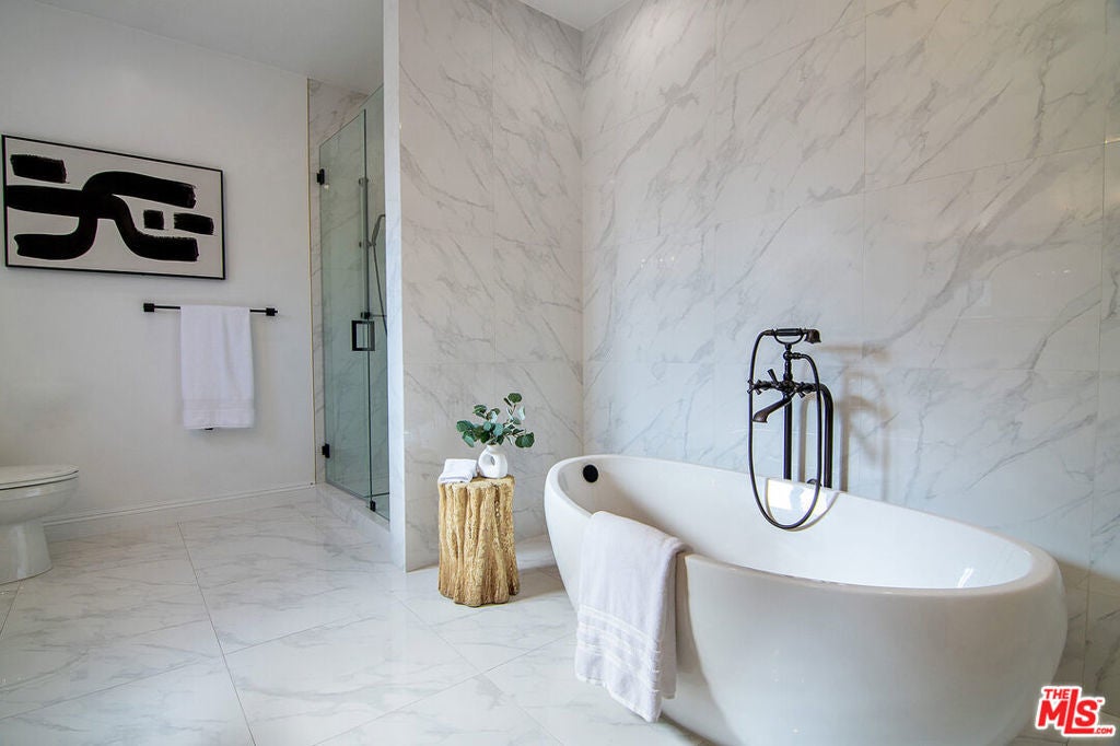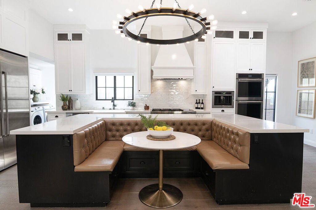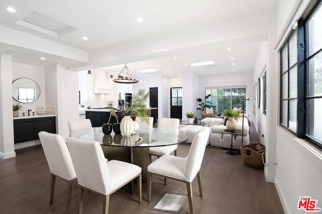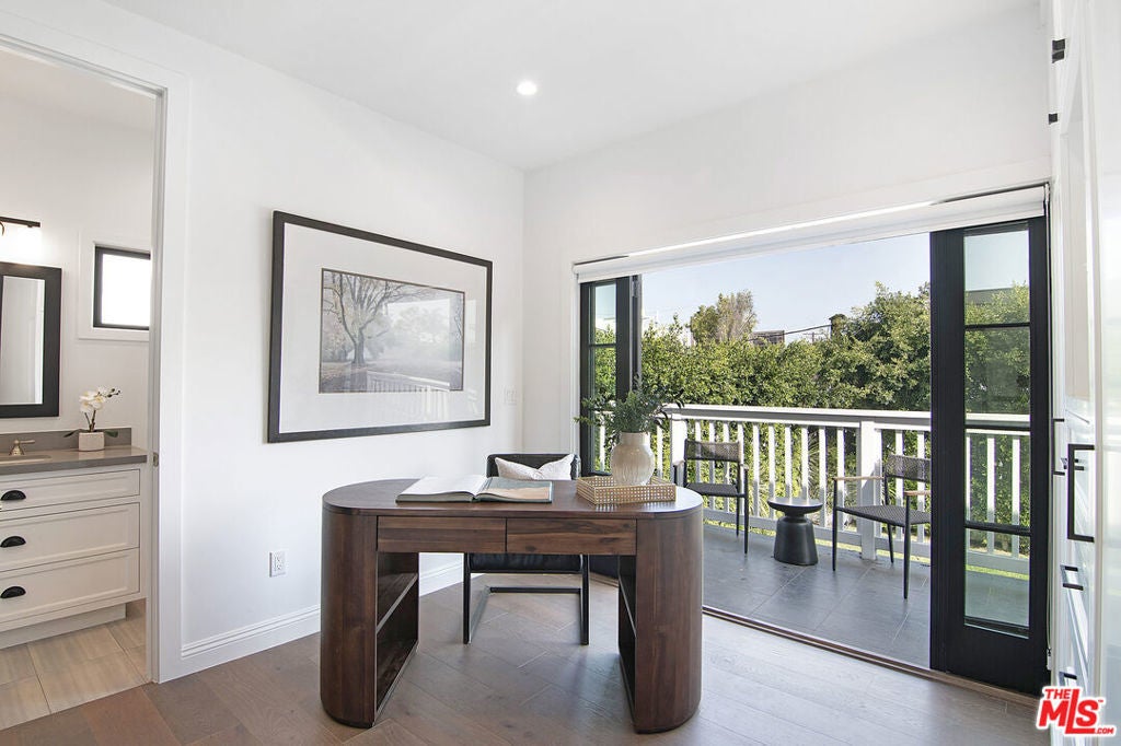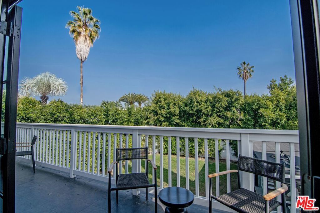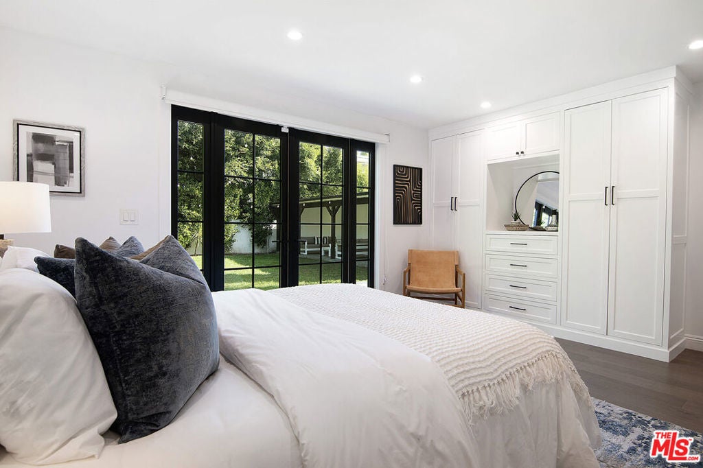 Great house in a fantastic location just off Melrose Avenue. Fully remodeled down to the studs and Designed with craftsmanship and sophistication, this "New Home" features 5 bedrooms and 4.5 baths, with plenty of space both inside and out. The main level includes three bedrooms and two and a half baths, along with an open-concept floorplan that connects the living, dining, and kitchen areas. The chef's kitchen showcases high-end, stainless steel appliances, a large center island, custom cabinetry, and a built-in breakfast banquette, ideal for morning coffee or casual meals. Upstairs, you'll find two private bedroom suites with soaring ceilings and an expansive balcony overlooking the grassy backyard. The primary bedroom is impressive with a high, vaulted ceiling, generous size and a large walk-in closet.. The spa-style primary bathroom has a beautiful shower with floor-to-ceiling white marble walls and a deep soaking tub. Step outside to a spacious backyard featuring a covered patio, ideal for outdoors entertaining. The large grassy area is great for playtime or just as a green backdrop to the property. Situated just minutes from The Grove and the Sunset Strip and an easy walk to the cafes & shops along Melrose.
