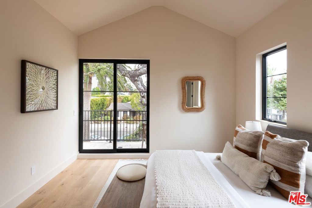 Discover this exquisite modern farmhouse, thoughtfully designed and nestled in one of Valley Village's most sought-after neighborhoods. Completely rebuilt, this 5BD/5.5BA estate showcases exceptional craftsmanship and sophisticated style, highlighted by designer finishes at every turn. Step inside to a grand open floor plan where abundant natural light creates a warm and inviting atmosphere. The formal living room offers plenty of seating and opens to the formal dining room, perfect for friends and family to gather. The chef's kitchen is outfitted with Thermador appliances, sleek porcelain countertops, and bespoke cabinetry. Adjacent to the kitchen, a fully-equipped separate prep kitchen stands ready for larger celebrations. The spacious family room features a dramatic electric fireplace, built-in shelving, and expansive floor-to-ceiling glass doors that open seamlessly to the backyard, offering effortless indoor-outdoor living. The first floor also offers a convenient en-suite bedroom, a theater room, and a stylish powder bath. Upstairs, four additional en-suite bedrooms await, including a show-stopping primary suite with vaulted ceilings, fluted wall accents, a private balcony, and a custom walk-in closet. The spa-like primary bathroom impresses with dual floating vanities, a freestanding soaking tub, a private water closet, and a large walk-in shower. A cozy loft, laundry room, and an additional outdoor patio complete the upper level. The entertainer's backyard is a true retreat, featuring a sparkling pool and spa, a spacious grassy area, and a built-in BBQ. Located within the coveted Colfax Charter School district and just moments from top dining and shopping, this home offers a perfect blend of luxury and everyday comfort.