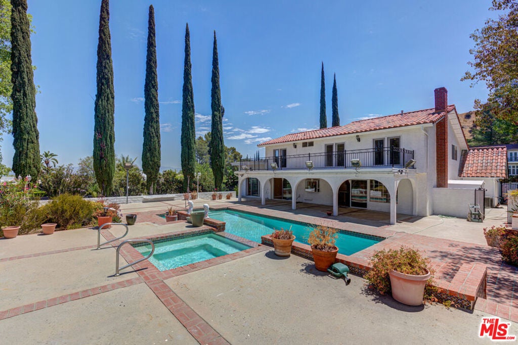 Available Now! Spacious 5 bedroom prestigious Lake Encino home with entertainer's yard, pool, and tree top views on a corner lot, high above the street. It Features 5 Bedrooms, 3 Baths, Huge Entertainers backyard with a pool and a Large covered patio and plenty of space for all your outdoor activities and parties all year long! Modern kitchen with center Island and new stainless steel appliances opens to an inviting formal dining room featuring crown molding and fireplace. Dramatic entry to a foyer with costume wrought Iron staircase which leads to four bedrooms all with wood floors, and two tastefully updated bathrooms with marble Floors. Master bedroom with an en-suite bathroom Leads to a very large balcony with amazing views. Access to the Lake Encino HOA for the use of Tennis Courts. Great local schools and shops in the area.