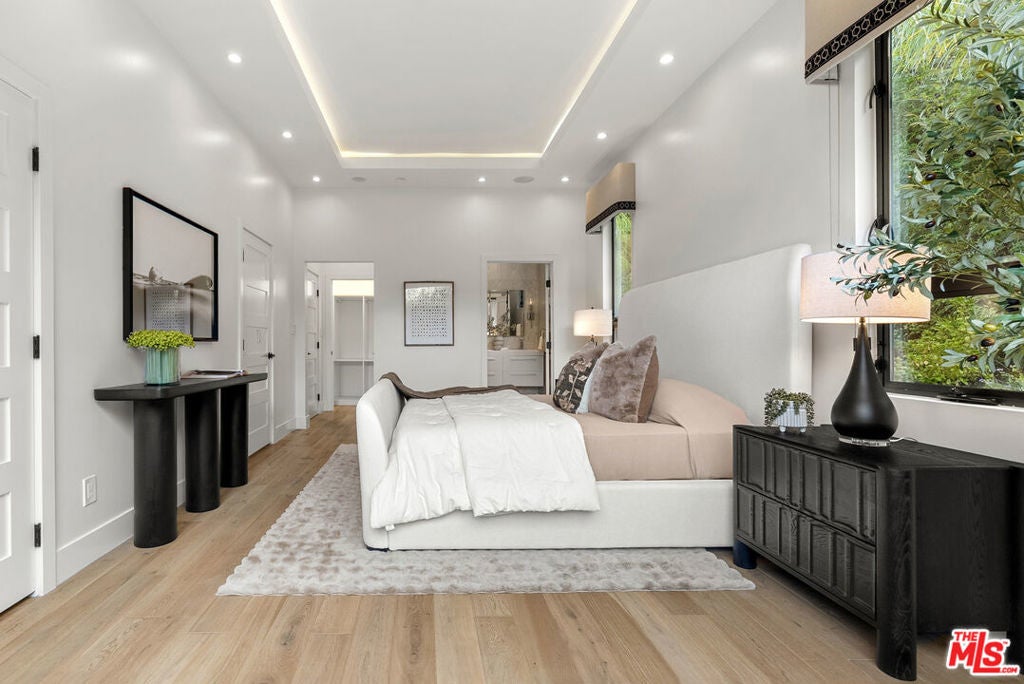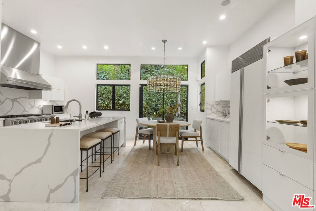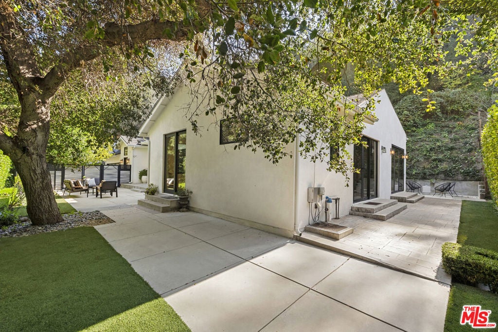 Tucked behind lush greenery on one of Beverly Hills Post Office's most desirable streets, this single-story contemporary retreat embodies California living at its best. Thoughtfully reimagined with timeless design and quality finishes, the home features soaring ceilings, walls of glass, and seamless indoor-outdoor flow. Custom, nuanced lighting enhances every space, while a chef's kitchen with bespoke cabinetry and top-tier appliances opens to multiple outdoor entertaining areas, including a patio with a full outdoor kitchen ideal for dining and gatherings. Three bedrooms include two private primary suites with walk-in closets, and smart home technology integrates a comprehensive security camera system, surround sound, and a convertible garage with heated floors and integrated EV charging for ultimate comfort and versatility. The terraced lot offers lush landscaping and the potential to add a pool, all within a serene, celebrity-favored enclave with easy access to both the Westside and the Valley.