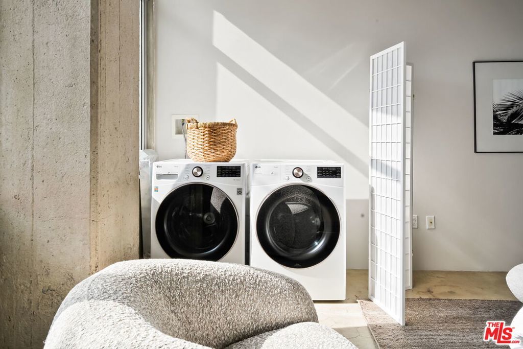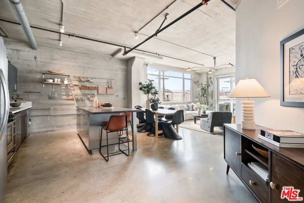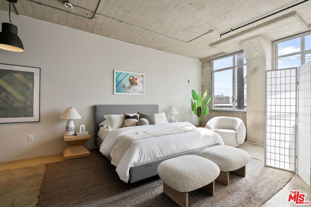 Stunning two bedroom, two bath sophisticated corner loft with office / den / recording studio and a large cooks kitchen. Views of the Downtown skyline and historic neighboring buildings, bathed in natural light, with exposed architectural details, polished concrete floors, dramatic over-sized pillars and floor to ceiling windows, reverse osmosis system, automatic black out shades, create a refined space that celebrates its industrial heritage. Located in one of the city's most desirable creative enclaves, the Downtown LA Arts District, this space perfectly blends modern comfort with timeless urban character. Blocks from the restaurants, coffee shops and boutiques in Little Tokyo and the Arts District, including Bavel, Bestia, Verve coffee, Girl and the Goat, as well as the 10 and 101 freeways, SCI-Arc and regional train stations, and TWO DEEDED PARKING SPACES.