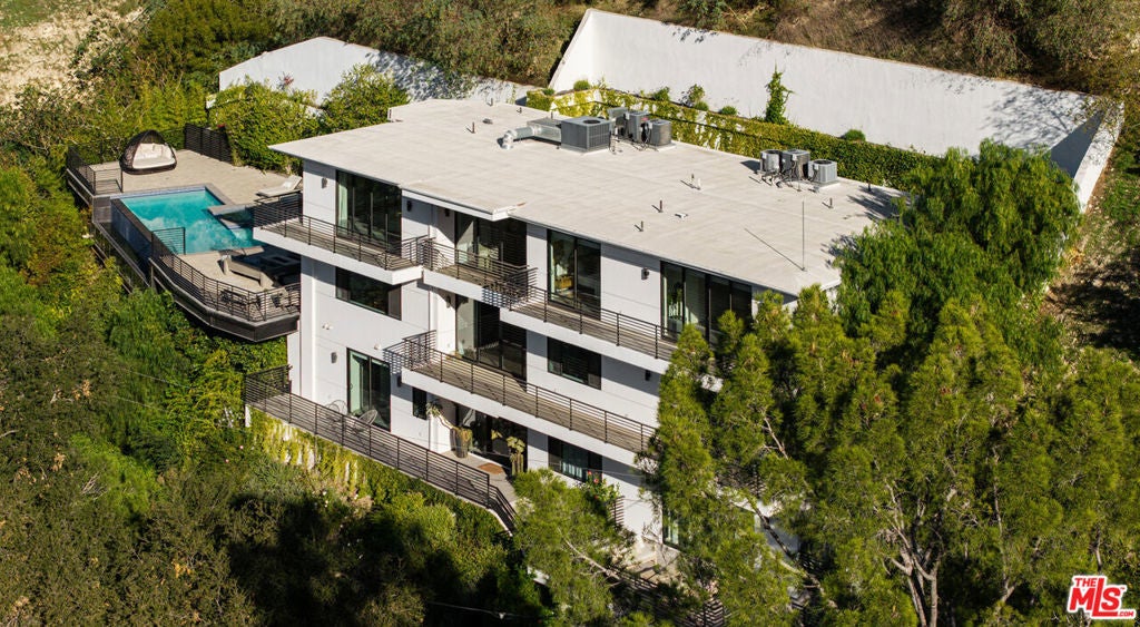 Perched high in the Sherman Oaks hills, this striking modern estate embodies design, performance, and luxury. Completed in 2020 and enhanced to perfection, the residence spans roughly 8824 square feet of open, light-filled living space framed by breathtaking mountain and city views. Every detail was envisioned for effortless entertaining, from the showpiece chef's kitchen with an expansive island and floor-to-ceiling glass, to the outdoor terrace that evokes the ambiance of a five-star rooftop escape, complete with an infinity-edge pool, cascading waterfall, fire pit, and multiple lounge areas for relaxation and gatherings. Lifestyle amenities include a professional-grade home cinema with advanced automation, and a fully equipped gym integrated within a remarkable 10-car showcase garage. A private elevator connects all levels with ease. The primary suite offers a tranquil retreat with a wraparound terrace, spa-inspired bath with soaking tub, and a custom dressing area, all capturing sweeping valley panoramas. Secured by gated entry and comprehensive surveillance, this property ensures privacy and peace of mind while defining elevated California living through bold architecture, refined finishes, and flawless execution.