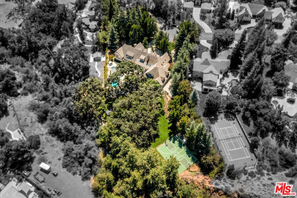 Set behind the exclusive gated community of Medea Valley Estates, 29105 Old Mill Creek is one of those properties that rarely comes along. Set at the end of a quiet cul-de-sac on over 1.8 usable acres, this 11,000+ square foot estate offers privacy, scale, and a creative edge that makes it feel truly custom.The design embraces volume and light, with massive windows, French doors, and skylights bringing in natural light throughout. A formal entry sets the tone and leads into a striking living room centered around warming fireplace and wall of French windows framing views of the parklike backyard and pool, creating a seamless connection to the outdoors. The formal dining room is built to host. Generous in size with elegant proportions, it easily accommodates large gatherings while still feeling intimate for smaller dinners. Positioned to flow naturally from the main living areas and kitchen, it's a space that works just as well for holidays and celebrations as it does for everyday meals. The chef's delight kitchen is outfitted with top-tier professional appliances, custom cabinetry, marble countertops, and an expansive butler's pantry. The chef's kitchen opens to a sunlit great room boasting a breakfast area and adjoining game room. A standout custom office adds personality, complete with a professional bar, floor-to-ceiling brick fireplace, and a built-in seating area ideal for meetings or evenings with friends. For elevated entertainment, the home features a professional media room designed for a true cinematic experience. Tiered seating ensures every seat has a perfect view, while French doors allow the space to open for larger gatherings or remain closed for an immersive movie night. The main-level primary suite is both dramatic and serene, with soaring ceilings, fully customized designer closets, and a spa-caliber bath featuring a multi-head steam shower,separate soaking tub and dual water closets. The backyard is where the property truly separates itself. Expansive lawns, mature Oaks, and multiple entertaining areas surround a sparkling pool and spa. A lighted sports court offers space for year-round recreation, while the natural creek running along the back of the property adds privacy and a peaceful, scenic backdrop. It feels like your own private park usable, secluded, and hard to replicate. A must see, you won't be disappointed.
