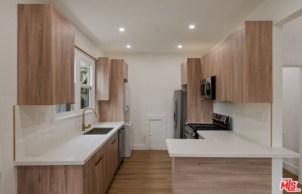 Discover modern Hollywood living at 5727 Carlton Way, a newly renovated and secure apartment community perfectly situated in the heart of the city. This boutique property blends sophisticated design with everyday comfort, offering beautifully updated residences that feel both stylish and functional. Each apartment has been completely refreshed with contemporary finishes, including designer kitchens featuring custom cabinetry, sleek countertops, and all-new, high-quality appliances - plus the convenience of an in-unit washer and dryer. Enjoy luxury flooring throughout, recessed lighting, brand-new windows, and roller shades with blackout options in the bedrooms for ultimate privacy and relaxation. The building provides controlled access, a newly enhanced courtyard space, and attentive professional management for peace of mind and ease of living. Step outside and explore the best of Hollywood just moments away from top-rated restaurants like Mother Wolf and Gwen, to grocery and retail options such as Trader Joe's and Target. Outdoor enthusiasts will love the proximity to Runyon Canyon and Griffith Park, while the nearby Metro station offers effortless access to the rest of Los Angeles. If you're searching for a rental that combines quality craftsmanship, modern amenities, and unbeatable location, look no further than 5727 Carlton Way. Parking available for a separate fee.