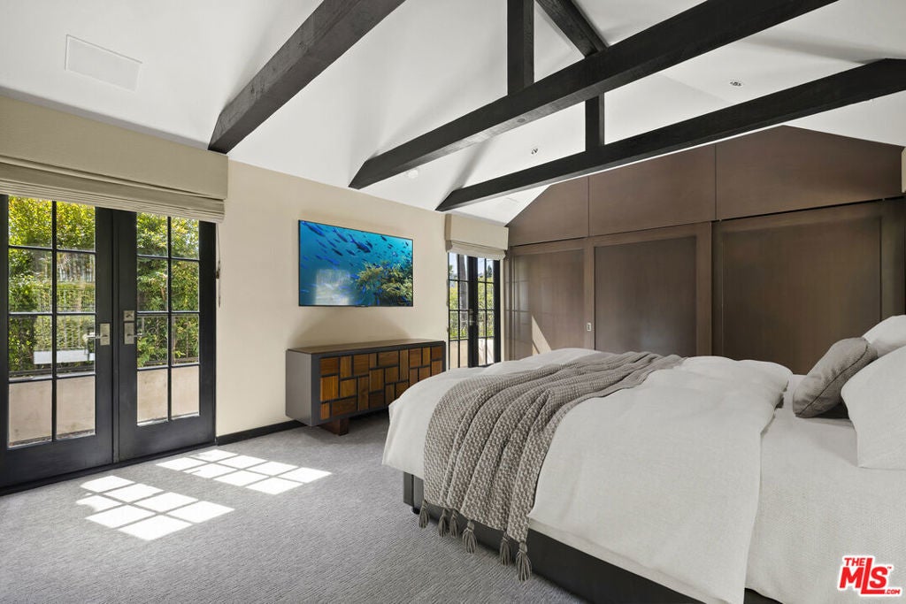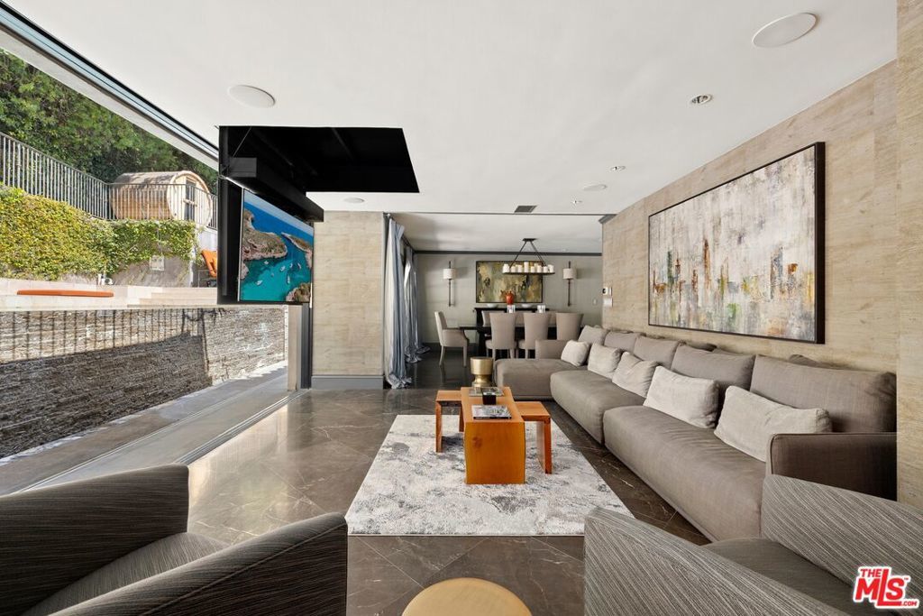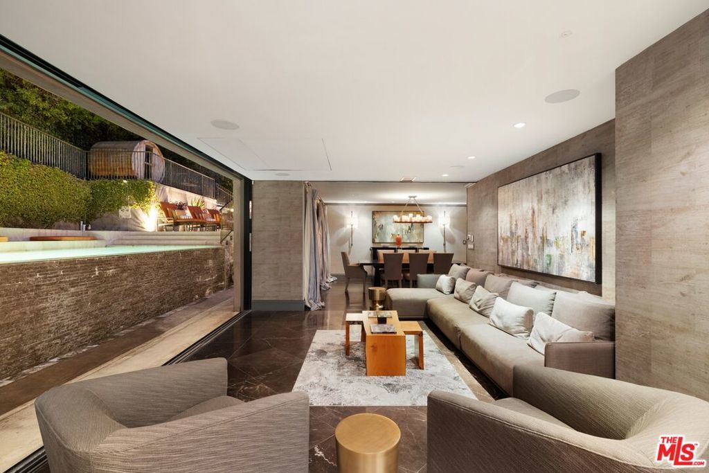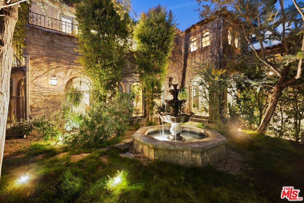 Also available for lease for $14K/mo. furnished, this 3,558 sq.ft. ivy-covered Spanish estate near Lake Hollywood showcases a seamless blend of timeless architecture and modern luxury. A step-down living room with an original oversized fireplace and expansive picture windows looks out over lush greenery, while a formal dining room connects to a family/media room featuring a concealed drop-down rotating TV and pocket sliding doors that open to the outdoors. The chef's kitchen is equipped with SubZero, Miele, and Wolf appliances, a central island, a breakfast area with French doors, and an adjacent full outdoor kitchen that enhances indoor-outdoor entertaining. Each en-suite bedroom is individually designed with high-end finishes, and the primary suite includes a spa-like bath, extensive closets, and a spacious terrace with views of the gardens, infinity-edge pool, and surrounding hills. A versatile bonus room can serve as a gym, nursery, or fourth bedroom. Smart home features include a Control4 system, Sonos audio, Nest climate control, outdoor surveillance, and iAqualink pool and spa management. The exterior offers a reverse infinity-edge pool and spa, stone water wall, firepit, multiple terraces, outdoor dining and lounge areas, an outdoor shower, built-in BBQ, and a grassy area with a dog run, all maintained by a Rachio smart irrigation system. The Knoll House delivers refined design, advanced technology, and resort-style living in one of the most desirable enclaves of the Hollywood Hills.