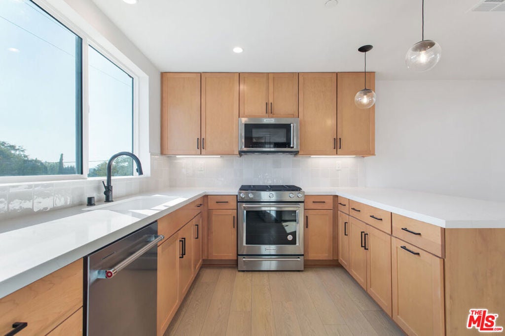 Welcome to Lyon Lane NoHo, an exclusive enclave of 16 modern townhomes in the heart of North Hollywood. 11218 West Lyon Lane offers approximately 1,800 SF of refined living space, featuring 3 bedrooms, 3.5 bathrooms, and a versatile fourth-floor flex space. This thoughtfully designed home showcases double-height ceilings, Shaw hardwood flooring, JennAir appliances, Kent Moore cabinetry, and quartz countertops. The expansive kitchen with a walk-in pantry seamlessly opens to bright living areas framed by oversized windows, creating an inviting atmosphere for entertaining and everyday living. Each bedroom is ensuite, including a first-floor guest suite offering privacy and flexibility. The 2-car garage comes equipped with EV-pre wire. Whether you're seeking a primary residence or an investment opportunity, Lyon Lane NoHo delivers contemporary comfort, elevated design, and an unbeatable location.
