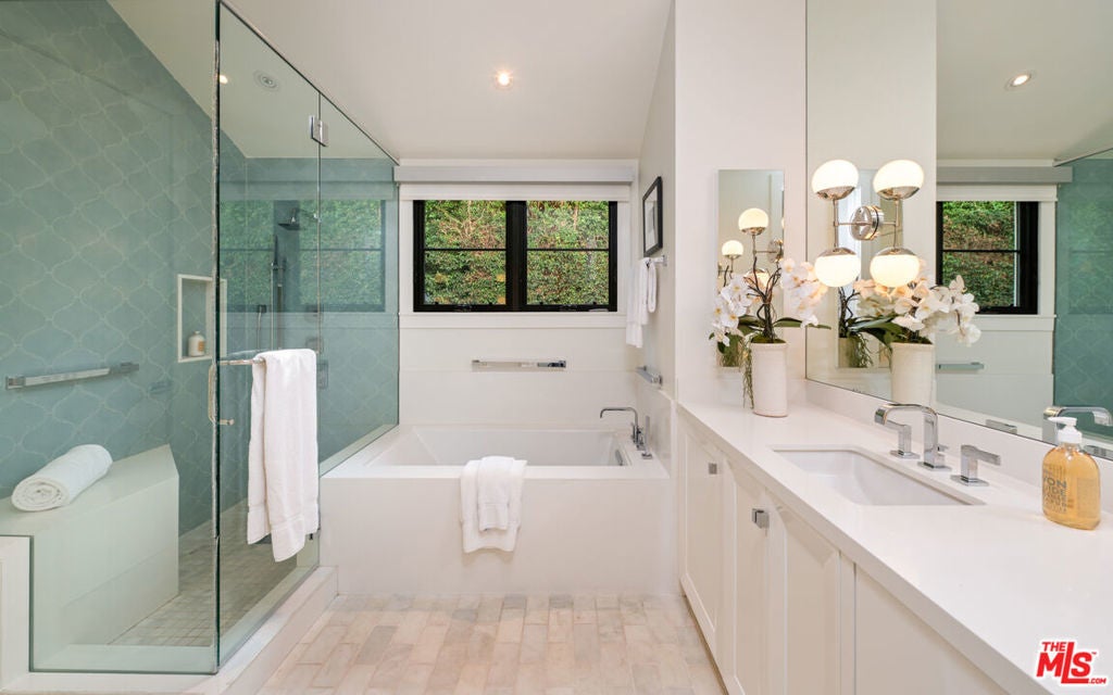 Located in the exclusive Riviera of Pacific Palisades, this custom-built traditional home was taken down to the studs in 2018 and offers 7,200 sq ft of refined living with six en-suite bedrooms (2 primaries) plus an office and nine baths on a 13,656 sq ft lot. A newly renovated salt water pool and expansive grassy yard create an ideal setting for entertaining or play. Inside, designer finishes pair with Control4 home automation, Lutron lighting, recessed speakers, and integrated security cameras. The upstairs primary suite features a spa-like bath with sauna and a custom walk-in closet. Recent upgrades, including whole-house carbon microfiltration and reverse-osmosis systems, ensure this meticulously maintained residence is move-in ready in one of Los Angeles' most coveted enclaves.