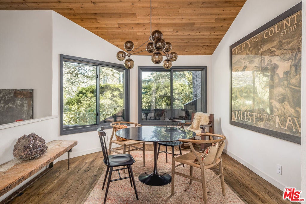 Situated among Montecito's distinguished estates, this striking wood-and-glass residence offers a private sanctuary amid the conifers. Designed by noted architect Don Henderson and updated by designer Lee Stanton, the home features dramatic two-story ceilings and expansive picture windows that invite the outdoors in, creating the feeling of living within the surrounding gardens. An open kitchen and family room anchor the home, with a serene primary suite below and two guest rooms above. A sunken living room and flexible den add mid-century charm and versatility. With an expansive deck, oversized two-car garage, circular drive, and a peaceful wooded setting near Montecito's Upper and Lower Villages, this home beautifully blends architectural distinction with natural tranquility. Location Info