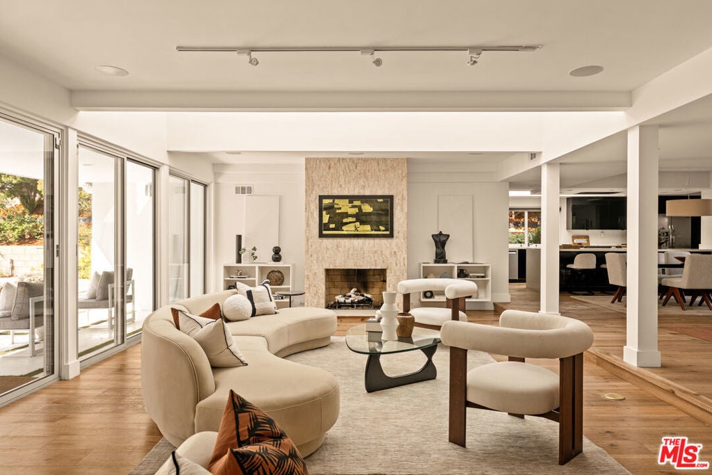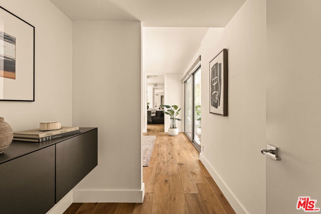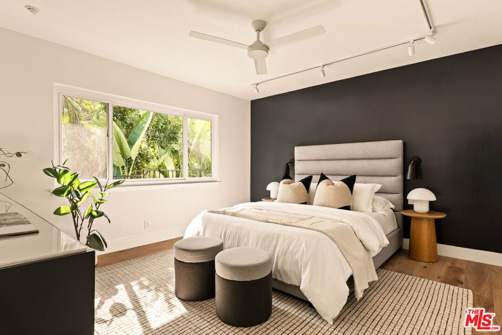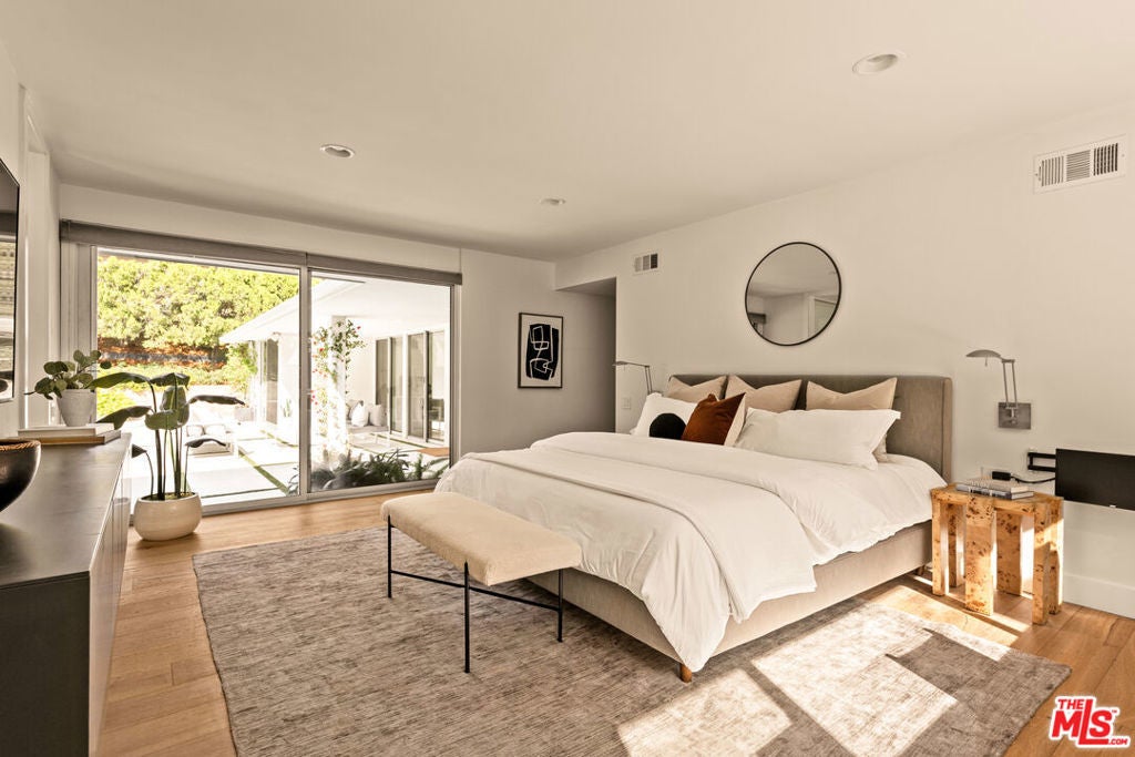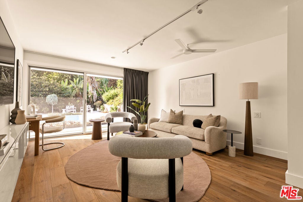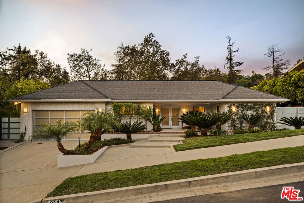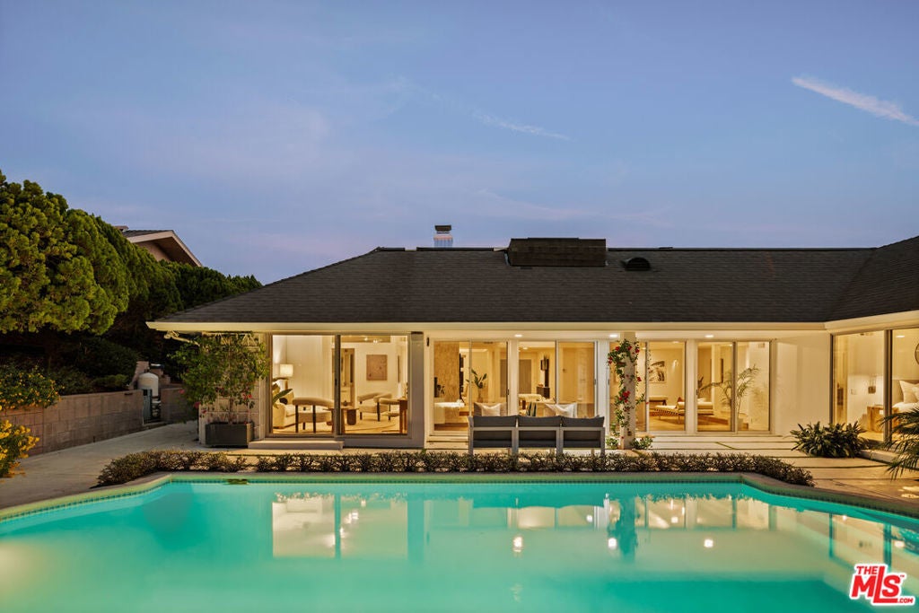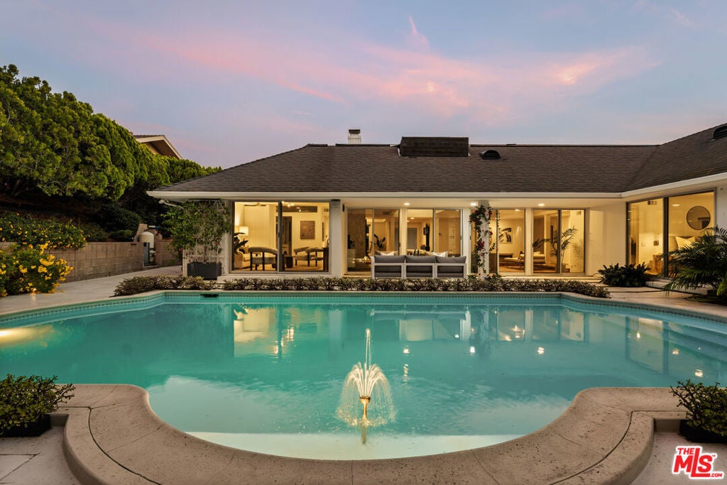 Nestled on the western edge of Griffith Park, this sleek 1964 single-story pool home with an effortless indoor/outdoor flow, is giving Palm Springs vibes in the Los Feliz Estates. Chic double-doors draw your eyes westward toward a sophisticated foyer with sightlines through the step-down living room's wall of floor to ceiling Fleetwood doors, to the heated, shimmering swimmers' pool which overlooks the verdant trees of Griffith Park's Fern Dell, making for a lushly secluded retreat. The open floor plan encompasses a grand living room with a natural flow to the pool and its many lounging areas. A marble and stone hearth anchors the room while the skylights soar above, and wide plank, oak floors tie the entirety of the home together. The kitchen, with its picture window framing outdoor greenery, is illuminated by even more skylights. A cozy breakfast area allows access to the palm-obscured front patio, for coffee, while enjoying the morning sun. Plentiful cabinetry and counterspace complement the vast quartz peninsula with waterfall edge which fluently establishes a connection to the semi-formal dining room. A pool facing convertible den/guest suite with a bath and a secret door complete the northern side of the home. Tucked just off the living room is versatile second bedroom suite which houses the technology/media closet, just across the hallway, a larger bedroom with its verdant view will make you feel like you are miles from the city! A full bath sits right outside its door. The primary suite has swagger! Generous in size, it features a wall of windows welcoming dappled southern light during the day. Sliding doors open to the pool allowing for a clandestine evening dip. The primary bath is a master class of equity! Separated by a sunken Roman tub with shower, each side possesses its own sizeable vanity, large custom closet, and W/C. Naturally, there are sliding doors from the tub to the outside. Swanky! A large, attached garage with utility sink, built-in storage and workbench enters the home through the convenient laundry/mud room. The grounds are tranquil. The understated exterior is graced with vining plants and palms along with established shrubbery, which hinders the view of neighbors, while setting the tone of serenity. Griffith Park hiking trails, the Greek Theater, and the Observatory are easily accessible, while the shops and restaurants on Vermont and Hillhurst are mere blocks away. Some of the many thoughtful upgrades include Velux Skylight and Samsung Smart Home systems. Most rooms are triple-wired with CAT5 data cables. Samsung Frame TVs. Hard-wired speakers throughout the living room and pool area. Central HVAC. The HOA provides a 24-hour Patrol and much more.