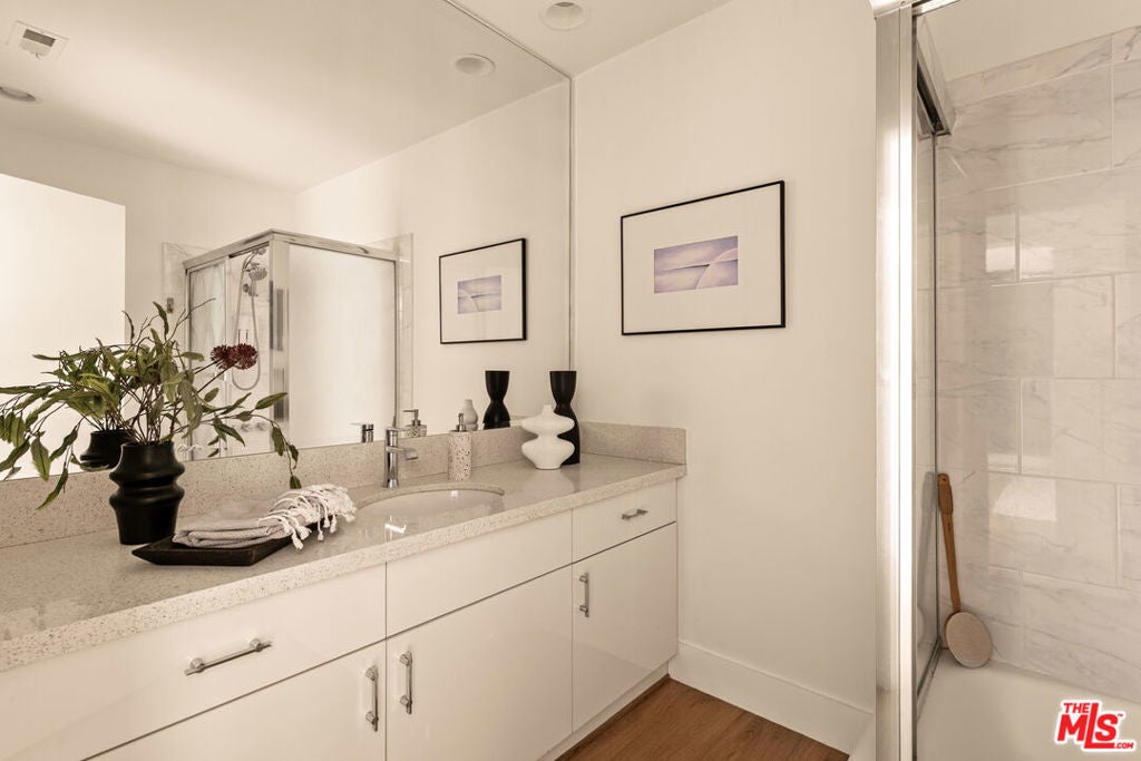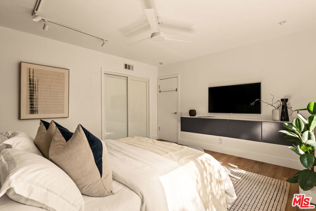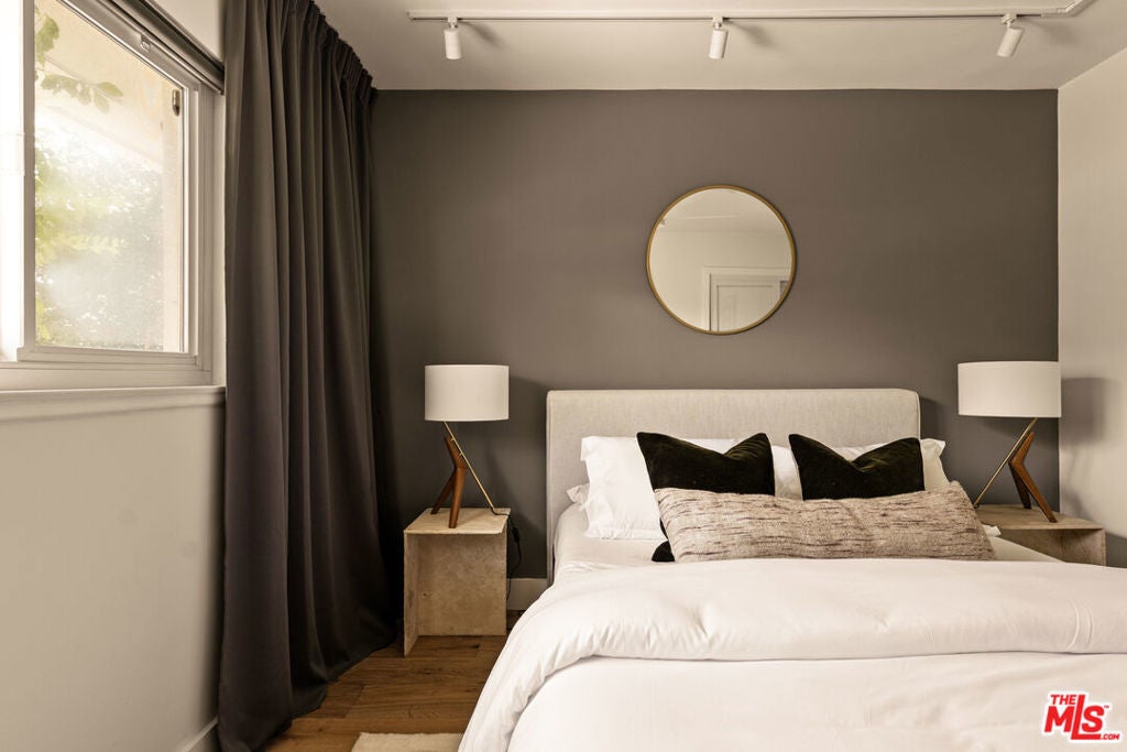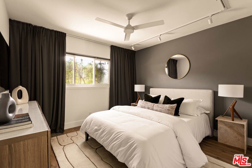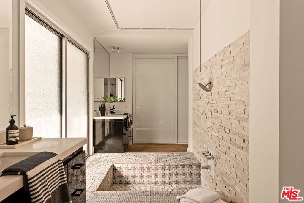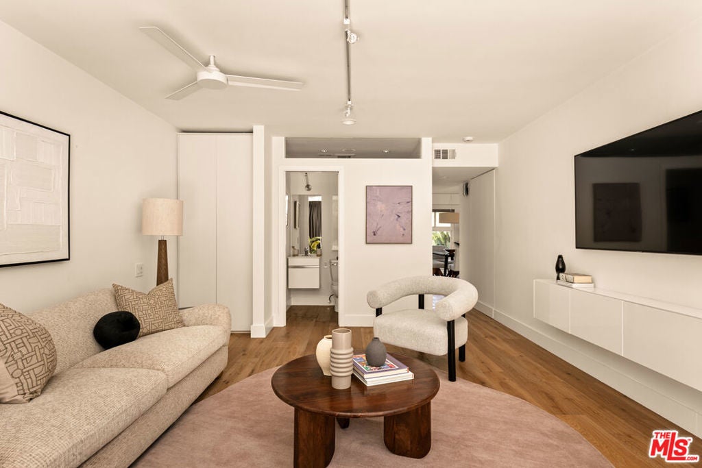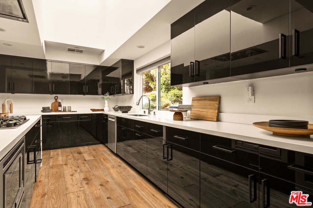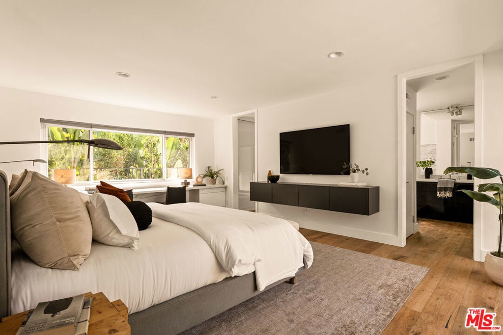 Nestled on the western edge of Griffith Park, this sleek 1964 single-story pool home with an effortless indoor/outdoor flow, is giving Palm Springs vibes in the Los Feliz Estates. Chic double-doors draw your eyes westward toward a sophisticated foyer with sightlines through the step-down living room's wall of floor to ceiling Fleetwood doors, to the heated, shimmering swimmers' pool which overlooks the verdant trees of Griffith Park's Fern Dell, making for a lushly secluded retreat. The open floor plan encompasses a grand living room with a natural flow to the pool and its many lounging areas. A marble and stone hearth anchors the room while the skylights soar above, and wide plank, oak floors tie the entirety of the home together. The kitchen, with its picture window framing outdoor greenery, is illuminated by even more skylights. A cozy breakfast area allows access to the palm-obscured front patio, for coffee, while enjoying the morning sun. Plentiful cabinetry and counterspace complement the vast quartz peninsula with waterfall edge which fluently establishes a connection to the semi-formal dining room. A pool facing convertible den/guest suite with a bath and a secret door complete the northern side of the home. Tucked just off the living room is versatile second bedroom suite which houses the technology/media closet, just across the hallway, a larger bedroom with its verdant view will make you feel like you are miles from the city! A full bath sits right outside its door. The primary suite has swagger! Generous in size, it features a wall of windows welcoming dappled southern light during the day. Sliding doors open to the pool allowing for a clandestine evening dip. The primary bath is a master class of equity! Separated by a sunken Roman tub with shower, each side possesses its own sizeable vanity, large custom closet, and W/C. Naturally, there are sliding doors from the tub to the outside. Swanky! A large, attached garage with utility sink, built-in storage and workbench enters the home through the convenient laundry/mud room. The grounds are tranquil. The understated exterior is graced with vining plants and palms along with established shrubbery, which hinders the view of neighbors, while setting the tone of serenity. Griffith Park hiking trails, the Greek Theater, and the Observatory are easily accessible, while the shops and restaurants on Vermont and Hillhurst are mere blocks away. Some of the many thoughtful upgrades include Velux Skylight and Samsung Smart Home systems. Most rooms are triple-wired with CAT5 data cables. Samsung Frame TVs. Hard-wired speakers throughout the living room and pool area. Central HVAC. The HOA provides a 24-hour Patrol and much more.