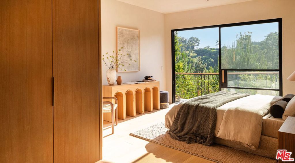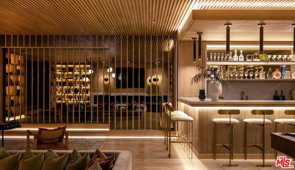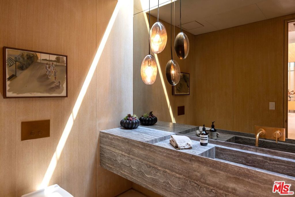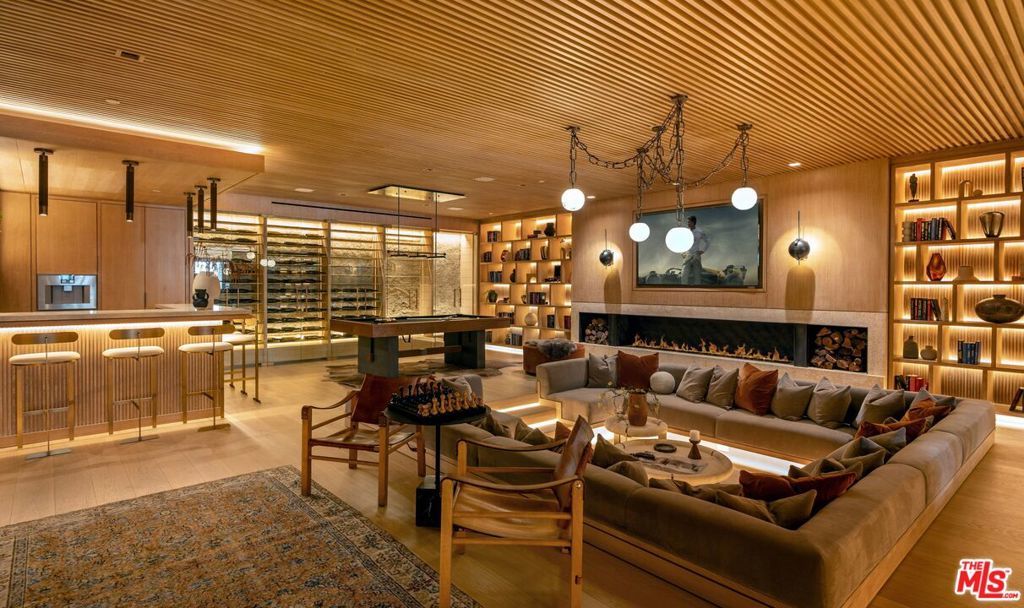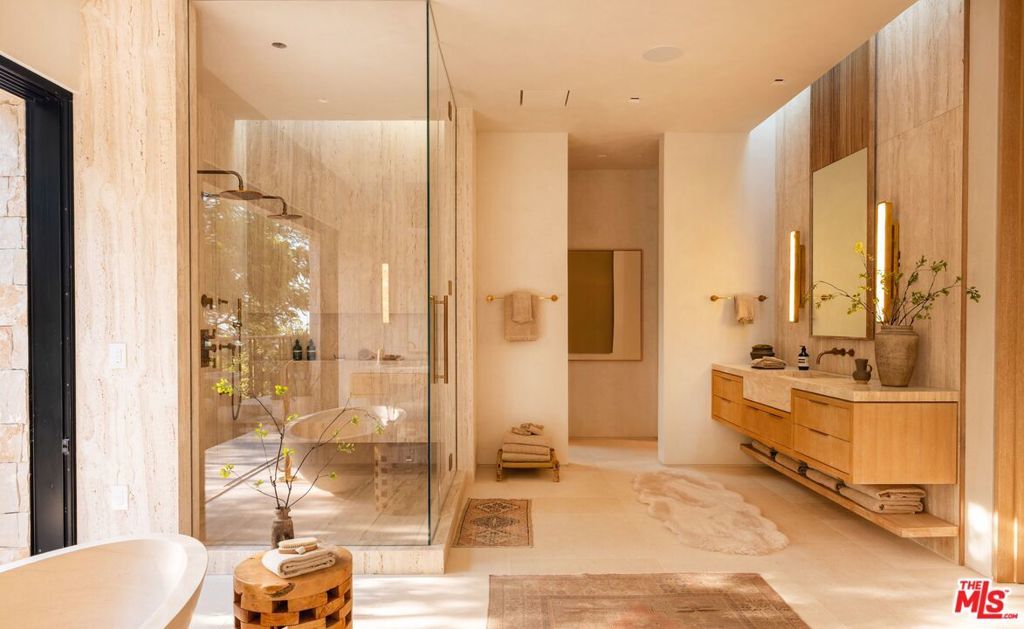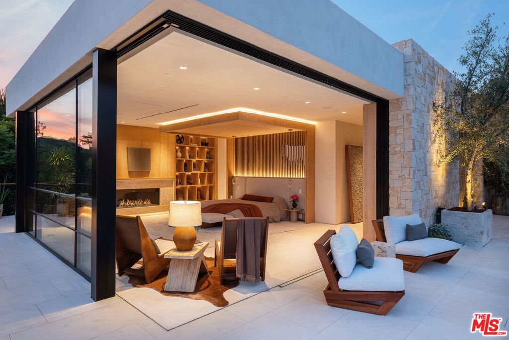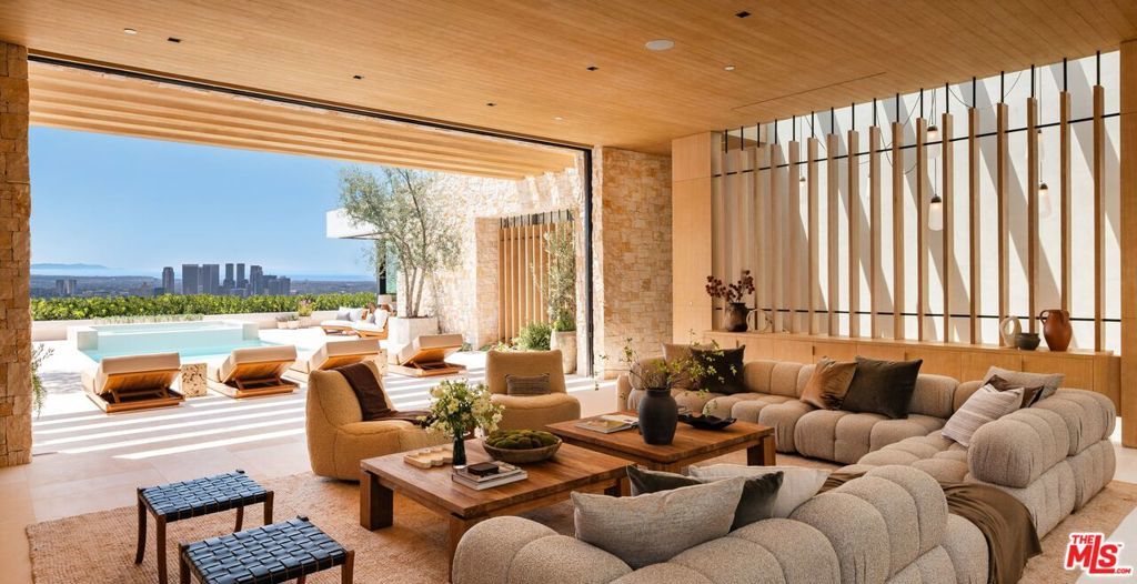 Experience timeless elegance in the exclusive Trousdale neighborhood of Beverly Hills. This organic estate, designed by renowned designer Charles Infante, weaves his experience in film to create a narrative fit for entertainment and curated for elevated living in every possible way. Spanning approx. 10,000 square feet, this architectural masterpiece showcases rich natural tones with Portuguese limestone, Italian Navona travertine, white oak paneling and floors, organic custom plaster walls, and motorized custom steel windows. Sleek lines perfectly frame cinematic city-to-ocean views. Inside, the main living spaces are open and airy, with walls of glass that fully pocket to create a seamless indoor/outdoor flow to the pool, spa, and patio. The expansive living room, dining area, and both the main and chef's kitchens are designed for grand scale living and entertaining. Four ensuite bedrooms offer refined comfort, in addition to a spacious, tranquil primary suite with motorized walls of glass, panoramic city views, and a spa-style bath. Luxurious amenities include a sleek gym with sauna, a temperature-controlled wine display, and an epic entertainment lounge with a sunken conversation pit, full bar, and state-of-the-art theater. The fully finished showcase garage features a car turntable; perfect for showcasing your collection. This is your moment to live above it all, in a home that sets the new standard for Trousdale living.