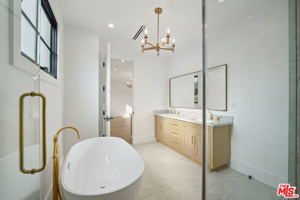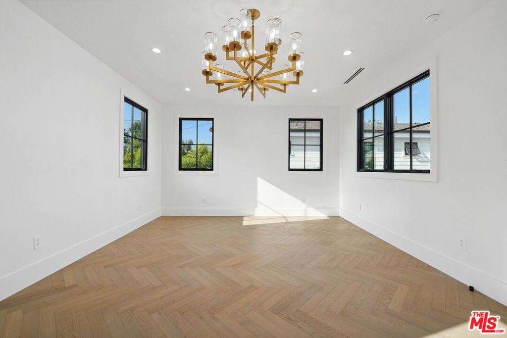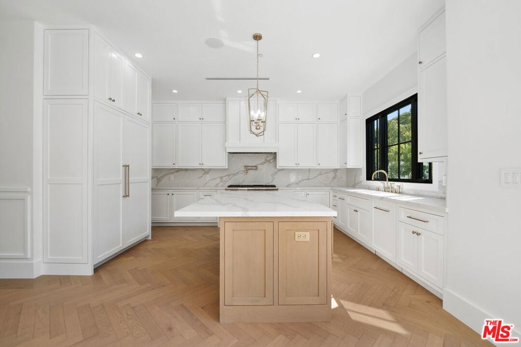 This New Construction is a showcase of impeccable design and craftsmanship in the sought-after Sherman Oaks flats. Every inch has been thoughtfully curated, with no detail overlooked, blending timeless elegance with modern sophistication. Inside, stunning herringbone hardwood floors set the tone for refined living, flowing seamlessly through spacious, light-filled interiors. The open-concept kitchen and family room are the heart of the home, designed for both comfort and style. A chef's dream, the kitchen features top-of-the-line Thermador appliances, a pot filler, and a Butler's walk-in pantry . The seamless indoor-outdoor connection leads to a beautiful, private backyard, an expansive retreat with a sparkling pool, spa, and generous grassy area, perfect for gatherings or quiet relaxation. With 5 bedrooms and 6 bathrooms, the home offers exceptional space and privacy. The primary suite is a true sanctuary, complete with soaring ceilings, a massive walk-in closet, a makeup vanity, designer lighting, and a spa-like bathroom featuring a freestanding soaking tub. Beyond the home itself, the location is simply unbeatable. It is just a short stroll to Equinox, Erewhon, and some of the best shopping, dining, and entertainment that Studio City and Sherman Oaks have to offer. A rare opportunity to lease a residence of this caliber in the heart of the Valley. Some of the rooms and backyard have been digitally staged.