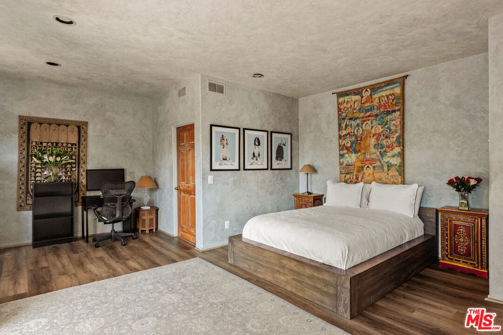 Tucked away on a quiet lane near the top of Nichols Canyon and just moments from both the City and the Valley, this extraordinary residence offers tranquility, privacy, and seamless indoor-outdoor living. Designed as an upscale hillside retreat, the residence blends natural beauty with refined comfort. The outdoor kitchen rivals most interiors, featuring a built-in stovetop, grill, refrigerators, warming drawers, and a kegerator, all centered around a striking outdoor fireplace and custom dining table to seat up to 22 comfortably. Ceiling-mounted heaters and fans create year-round comfort for al fresco dining and gatherings. Inside, the main living level opens directly to the pool deck and features a recently remodeled chef-inspired kitchen with dual stoves, two dishwashers, multiple sinks, and extensive custom cabinetry, designed for both function and elegance, that inspires culinary experiences. The dining area complete with a tiled fountain and wine closet sets the stage for intimate dinners and celebrations alike. Throughout, the home is characterized by high ceilings, abundant natural light and a direct connection to nature. Upstairs, is the spacious primary suite, with walk-in closet, fireplace, broad balcony and a spa-like bathroom retreat with Waterworks fixtures, steam shower, and whirlpool tubs. Two additional guest bedrooms and an office complete the upstairs. Downstairs, a fourth bedroom suite with private entry provides an ideal guest, office, or creative space. The renovated garage features Pebble Tec flooring and built-in storage, with additional storage areas tucked beneath the lower decks. Sustainably designed, the home is powered by solar energy throughout and features a whole-home generator seamlessly wired for full operation providing energy independence and peace of mind year-round. Moments from the city yet worlds away, this home has been the backdrop for countless cherished memories and now it awaits its next chapter.