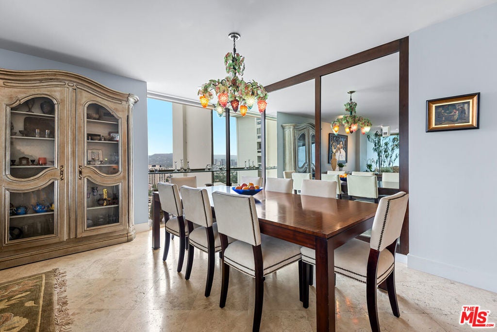 Stunning residence in Century Towers 2br, 2ba luxury condo offering breathtaking views the Hillcrest Country Club, Ocean and Century city. Unit offers floor to ceiling windows and electric window covering in the living room. The kitchen feature a breakfast bar/ eat-in-island perfect for entertaining with travertine flooring . Additional highlights in unit washer with room for a dryer to be install. Upon entering through the 24hrs guard gated entrance leading to a beautiful designed lobby. Exceptional amenities such as concierge service, valet parking, swimming pool, tennis court putting green , fitness center and sauna. Century Towers offers a sophisticated life styles. Dining room chandelier not included.