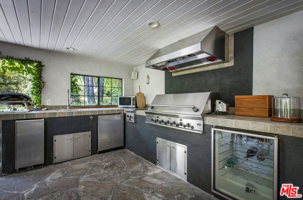 In a scenic and private Altadena setting, this updated 1940's Cape Cod home delivers abundant space and a sparkling pool on lush, resort-like grounds with views of the San Gabriel Mountains. The expansive layout spans two levels, featuring a welcoming living room with a wood-paneled fireplace, crown molding, and French doors that open to the patio and yard, along with a light-filled dining room. The spacious kitchen is beautifully appointed with marble countertops, Viking appliances, a Bosch dishwasher, a center island and built-in storage. Upstairs, three sunny bedrooms include a generous primary suite with a walk-in closet, soaking tub, and dual marble vanities; the downstairs den with a fireplace and private entrance is perfect for guests, work, or a media lounge. The oversized yard feels like a private retreat with a pool, spa, and waterfall, and a fully equipped outdoor kitchen and fireplace, a verdant escape for entertaining and relaxing.Near Altadena and Pasadena favorites, Prime Pizza, Millie's Cafe, Carmela Ice Cream and more.