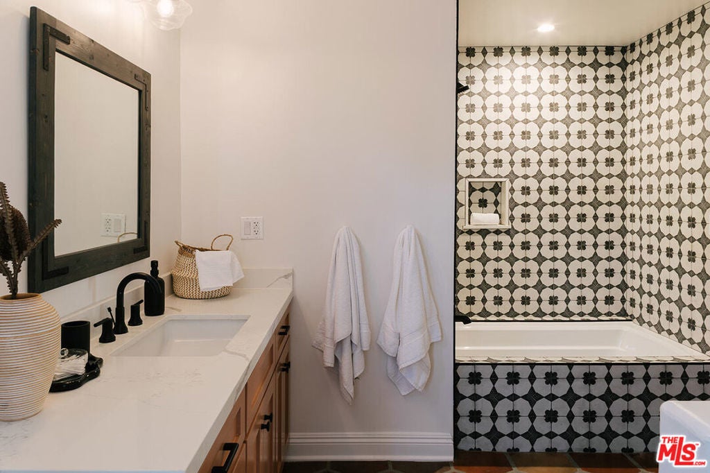 Welcome to the Miracle of Miracle Mile. 910 Masselin is a reimagined and reinvigorated 1925 character home brought to new life with integrity, craftsmanship and joy. The main house underwent a thorough renovation in 2020. The biggest changes are the ground up new construction kitchen with vaulted ceilings, large center island, french doors w/ sidelights to the back, abundance of custom cabinetry and saltillo floor tiles baked from clay at the Saltillo River itself. The kitchen is a show-stopper. The other major change was the expanding and vaulting of the primary while giving it a large en-suite bath and walk-in closet. The shower is over-size with Emser tile, a vigorous Mr Steam and two decorator-level shower heads. The original, barrel vaulted living room and canopy-vaulted dining room are untouched, as are the original lathe and plaster walls. The second and third bedrooms are large and comfortable. The 2nd bath has the saltillo tile, custom tub and lots of volume. New systems include: solid oak floors, foundation bolting, 200 amp panel, roof, water heater, HVAC, water supply from city and new driveway apron. The back house is a legal 707 sf ADU completed in 2022. It has the same build quality of the main house with a luxury, new-appliance kitchen, high end bath and separate room with wall of custom shelves and cabinets and french doors to a private patio. There is a lot of storage in both the ADU and the main house. The landscaping in the front and back is almost all new, including retaining walls, mature landscaping, specimen trees, irrigated garden beds, custom accoya decks, walls and pergola/ trellises, irrigation and drainage systems. Outdoor areas include: gated and locked front patio with custom iron and wood work, back yard gravel and stone fire pit with cafe lights and a hardscape area under more lights for outdoor dining or entertaining. The yard in the middle reads as an exquisite jewel suitable for play or admiration. The front yard outside the main gate is private and elevated from the street, further enhancing privacy and security. There is a security system with cameras and a Tesla charger and a locked, gate at the driveway. The property sits on the best street in Miracle Mile, which is double wide. Features of immediate location include: LACMA, Tar Pits, Grove, All Seasons Brewery and Met Him At A Bar. Very close to BH, WeHo, Hancock Park and Melrose. Location can't be beat. In real estate, we say, "this is a good one."