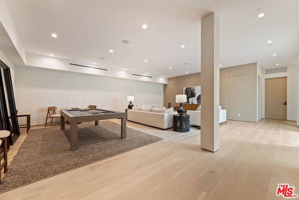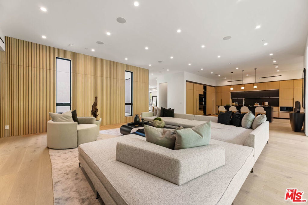 Custom crafted luxury contemporary home featuring 6 bedrooms, 9 baths, 2 offices, gym, and home theatre with a Sony 4k projector on a 13,473 flat lot in Brentwood. Inspiring main level welcomes you to quintessential indoor outdoor California living. Gleaming hardwood floors guide you through the home, leading to a light-filled dining room framed by oversized windows and overlooking a picturesque courtyard, ideal space for intimate gatherings or quiet moments. Open floor plan generates a smooth flow from living to dining rooms. Family room with fireplace, gourmet kitchen with top-of-the-line appliances, large center island with seating, walk-in pantry, office, and bedroom with en-suite bathroom. Over 20ft Fleetwood pocket doors opening to a covered patio overlooking the ultimate entertainer's dream backyard. Upstairs beholds 3 junior bedrooms with en-suite bathrooms plus a master bedroom. The spacious master retreat features an oversized walk-in closet, immense luxurious bathroom, and glass sliding doors leading out to the extensive balcony. Lower level features a second office, bedroom with en-suite bathroom, gym, home theater, family game room, and courtyard. Designed for both grand-scale entertaining and everyday comfort, this home is more than just a home, it's a lifestyle.