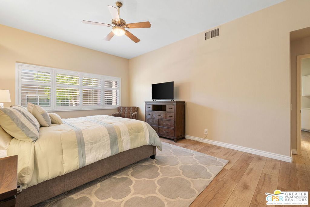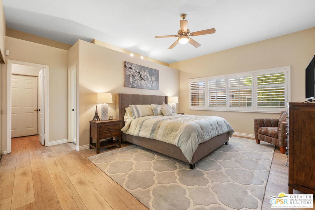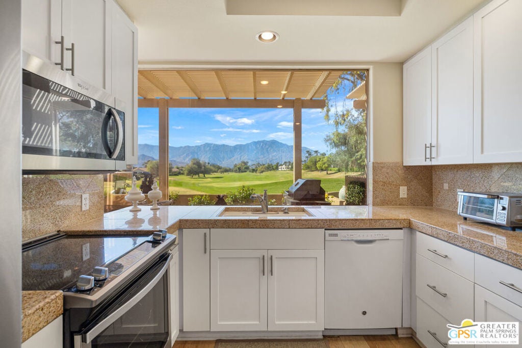 FRONT-ROW fairway and mountain views steal the show from this stylish retreat perched above the 3rd fairway of the Pete Dye Challenge Course at Mission Hills Country Club. The San Jacinto Mountains rise dramatically and when the sun sets, it's pure MAGIC. The extended patio with pergola creates the perfect scene for cocktails, dinners, or quiet mornings. Inside, tall ceilings and windows frame the views while the kitchen blends style and function with a breakfast bar and seamless flow. The primary suite features dual vanities, separate tub and shower, and clerestory window filling the room with natural light. Guest Bedroom Two is adjacent to a full bath and the den/office is currently enjoyed as a third bedroom. Attached two-car garage, and fee-simple ownership means you own the land. Mission Hills East / Deane Homes offers a relaxed resort vibe with four pools and spas, lush fairways, and gated privacy. All part of the legendary Mission Hills Country Club with three championship golf courses, top-tier tennis and pickleball, and a vibrant social scene. The Westin Mission Hills Resort is nearby and a fun option while the best of Rancho Mirage is there to enjoy as well!