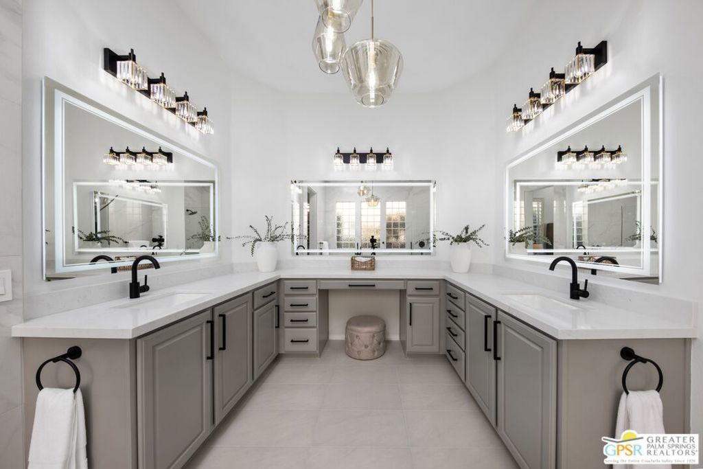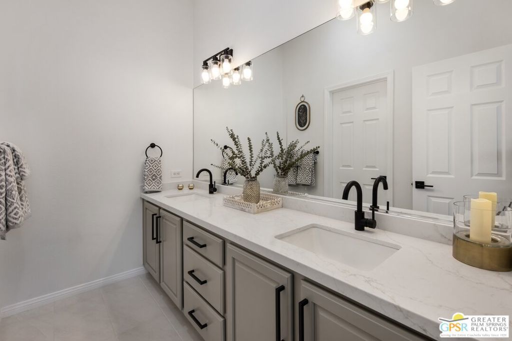 Back up offers welcome. Beautifully renovated and move-in ready, this 2,500 sq ft Westerwood floor plan combines style, comfort, and resort living. Located on the 7th hole of the golf course, it offers privacy, sweeping mountain views, and lots of natural light. Enjoy two bedrooms plus a den, three baths, dual living areas, kitchen and fireplace, custom built-ins, and plantation shutters throughout. Outdoor living shines with a covered patio, enclosed front porch, and inviting private pool and spa. With a laundry room, golf cart space, and new tankless water heater, every detail is in place. Heritage Palms, a premier 55+ community, offers a resident-owned championship golf course, vibrant social clubs, and a prime location near shopping, dining, and all the best of the Coachella Valley.