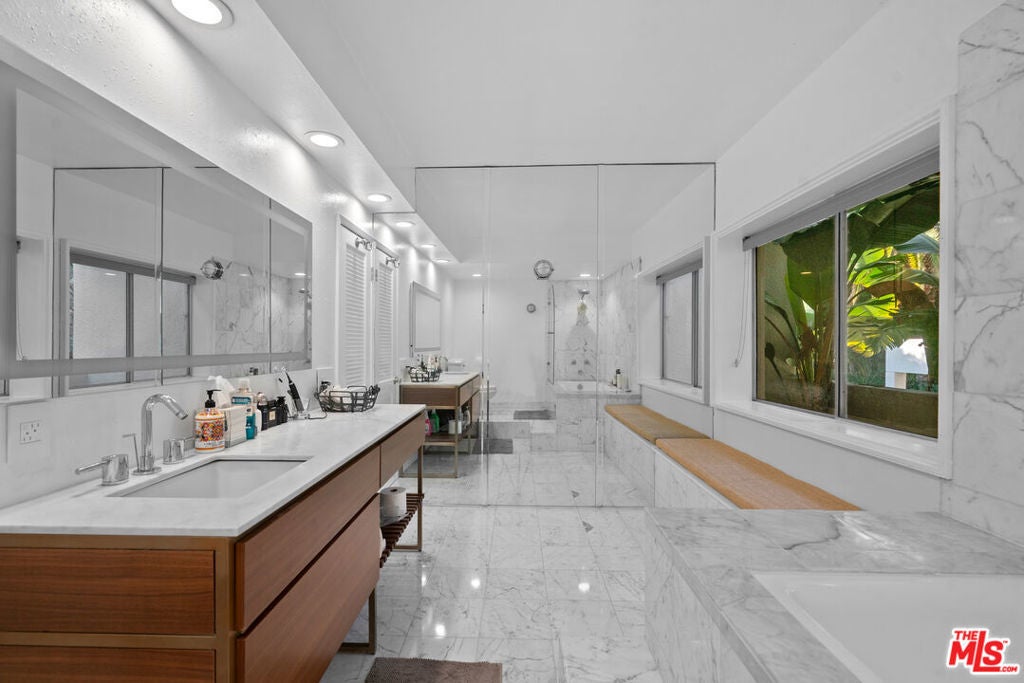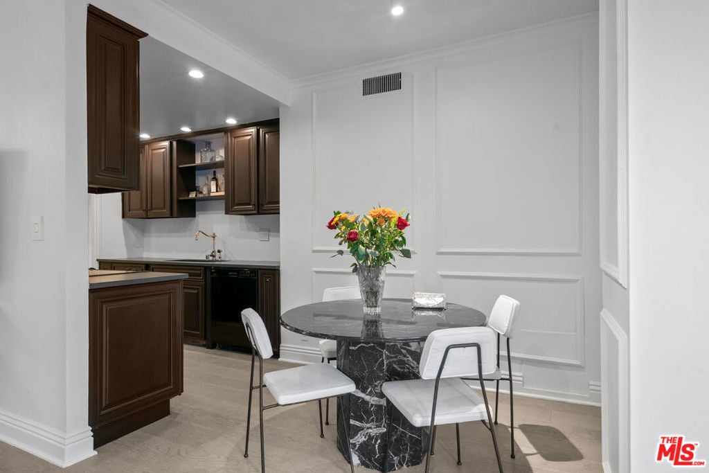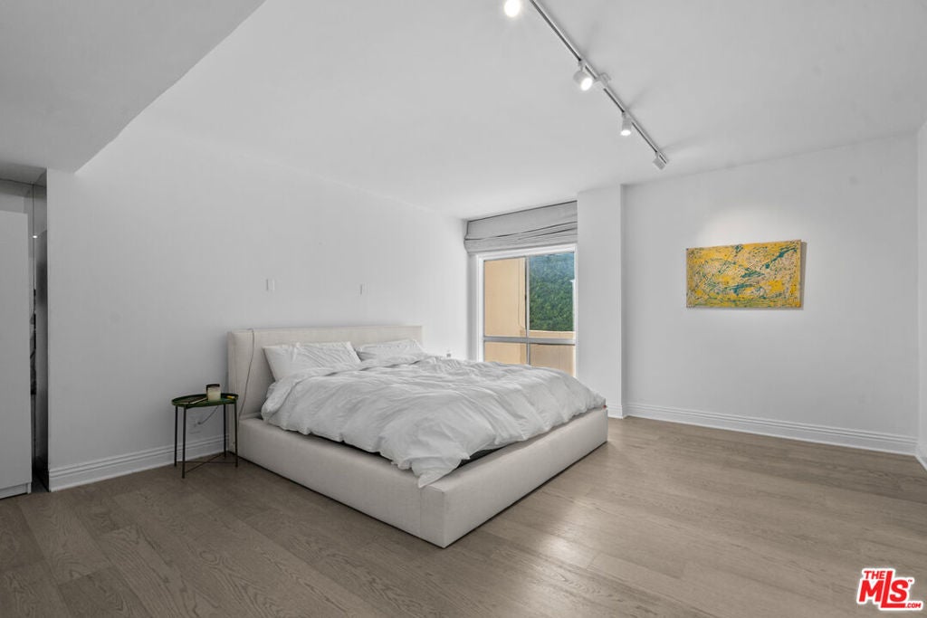 Stunning Furnished Corner Residence at The Park Wellington Former 2BR Layout with Expanded Luxury Suite. Set behind the iconic palm-lined entrance of The Park Wellington, this rare furnished corner unit offers a sophisticated blend of scale, privacy, and resort-style living in the heart of West Hollywood. Originally designed as a 2-bedroom, the home now features an exceptionally large 1-bedroom, 1.5-bath layout, allowing for a dramatically expanded primary suite and a spa-like bath seldom found in the building. The bright, open-concept living and dining area is framed by lush greenery and opens seamlessly to a tranquil balcony overlooking the interior gardens. High ceilings, custom wall paneling, wide-plank flooring, and designer furnishings create an elevated, contemporary feel throughout. The sleek kitchen offers generous counter space, rich cabinetry, and quality appliances. The oversized primary bedroom is a true retreat, complete with a walk-in closet and a beautifully upgraded ensuite bath featuring marble finishes, a deep soaking tub, separate shower, and abundant storage. A chic guest powder room completes the thoughtful floor plan. Offered furnished, this residence delivers a turnkey lifestyle within one of West Hollywood's most desirable full-service buildings featuring a heated resort pool & cabanas, spa, fitness center, tennis court, 24-hour concierge, and gated parking. Moments from the Sunset Marquis, Equinox, and the premier dining, shopping, and energy of the Sunset Strip. A rare opportunity to lease a uniquely expanded and refined home in an exceptional location.