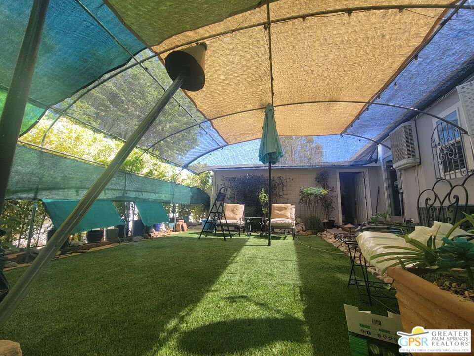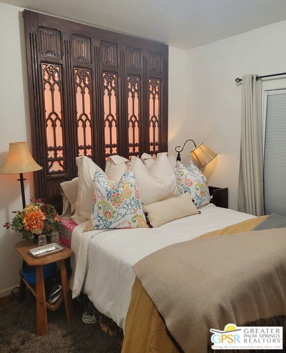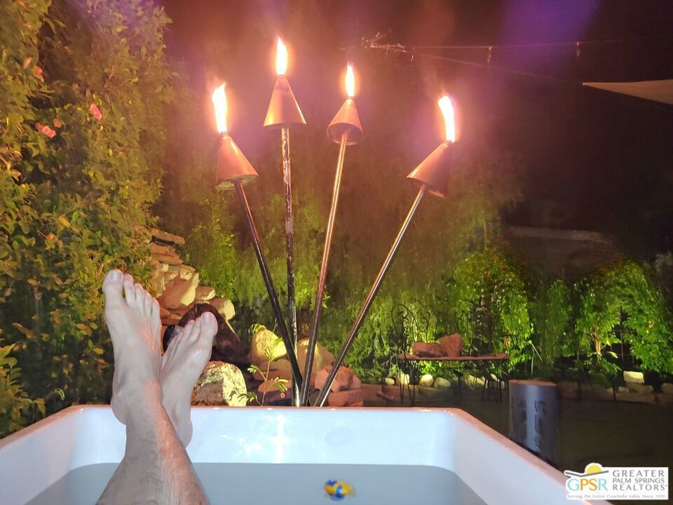 Want a home that has nearly everything you need already there for you? Then come live in this TURN-KEY FURNISHED ENTERTAINERS DREAM where EVERYTHING IS INCLUDED. Built in 2016, this home is one of the newest in the Community. In the gated and lively 55+ Community of Vista Montana, you are only minutes to downtown Palm Springs and the PS International Airport. The rest of the Coachella Valley is also minutes away, giving you all the benefits of this international resort destination. Joshua Tree in the high Desert, LA and the rest of SoCal are only a few hours trip. Experience the Spa City of Desert Hot Springs like a local, and the naturally occurring mineral springs with water that places in the top ten best water every year. The custom front Entry to the home is just across the street from the Clubhouse, Pools and Spas. Nearly every room has marvelous snowcapped mountain views of Mounts San Jacinto and San Gorgonio. The Living Area is truly an open living concept, with Living, Kitchen, and Dining Areas all adjacent. A Gourmet kitchen has Chef-styled Gas Cooking, with both see-through doored and separate Sub-zero Refrigerators alongside the full-sized stacked Washer and Dryer in the Pantry Room. You have cooking appliances galore, even a massive French Copper Cookware Collection! All this, and a complete outdoor kitchen as well that includes a Pro WOK 150,000 BTU burner to make anything you could find at your favorite Chinese Restaurant. You have a double stainless sink, 4 burner professional cook top, lava-stone gas char broiler, and even a PIZZA OVEN at your disposal. The private Primary suite has a King Size SPLIT TEMPERPEDIC MATTRESS with full 9 function separate independent massage and power tilt features for the perfect night's sleep. This is the deluxe Tempurpedic, where you feel you are sleeping on clouds. The comfortable en-suite Bath boasts a separate private water-closet for the commode and an oversized Closet. From here a private glass door takes you out to the custom covered back patio living space set up with outdoor carpets, and a private outdoor deep soaker tub with outdoor shower offering complete privacy under the stars. Copper flaming tiki torches brought from Hawaii and 3 waterfalls with large open artificial grass lawn completes the true RESORT EXPERIENCE of the privatized Rear Yard. Secondary bedroom has the most comfortable orthopedic queen size mattress ever and private Jack & Jill full Bath. Stocked with fluffy bath-sheet towels and pool towels as well, EVERYTHING YOU NEED IS HERE. Just across the hall is an optional third bedroom, bonus-room Den/ TV Room with daybed and trundle underneath, so you can easily accommodate up to 6 people comfortably. Each Bath commode has a fully functioning bidet system. The home is located on the prime lot in the Vista Montana Community, with the amazing Clubhouse literally across from the front door. The Clubhouse features soaring timber beam 40 ft ceilings in the Entry, giant caterers' Kitchen, Dining Hall, Billiards Room with 4 pool tables, separate "men's and women's lounges" and separate Art Studio and Crafting Room. An onsite Manager attends to any needs. Our primary extra-large Swimming Pool is heated year-round and covered with a shade overhang. A separate large wading pool is behind the Gym, which is a separate building with Pro machines, redwood Sauna and changing Rooms, Bathrooms and outdoor tiled showers. Two large Spas at different temps both offering jets and bubbles. A winding central Park and a separate Dog Park are available as well. So many things to enjoy! The Owners personal property will be in garage that won't be accessible but there's ample 2 car parking in the driveway and ample guest parking directly adjacent to the home. Wifi internet and Direct TV with Netflix and Amazon Prime are set up. The home has four TV sets for enjoyment and 20 solar panels to keep utility costs down. Come Enjoy true RESORT LIVING! Six months minimum, up to 1 year lease