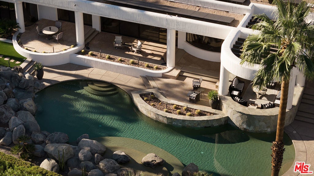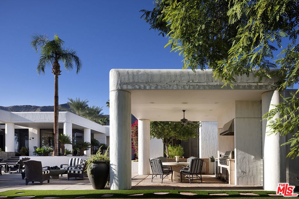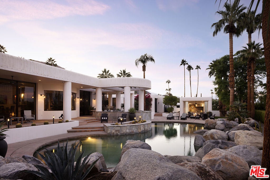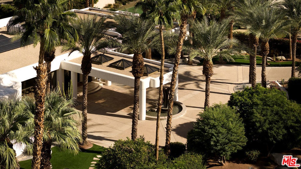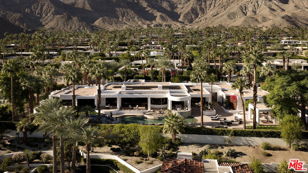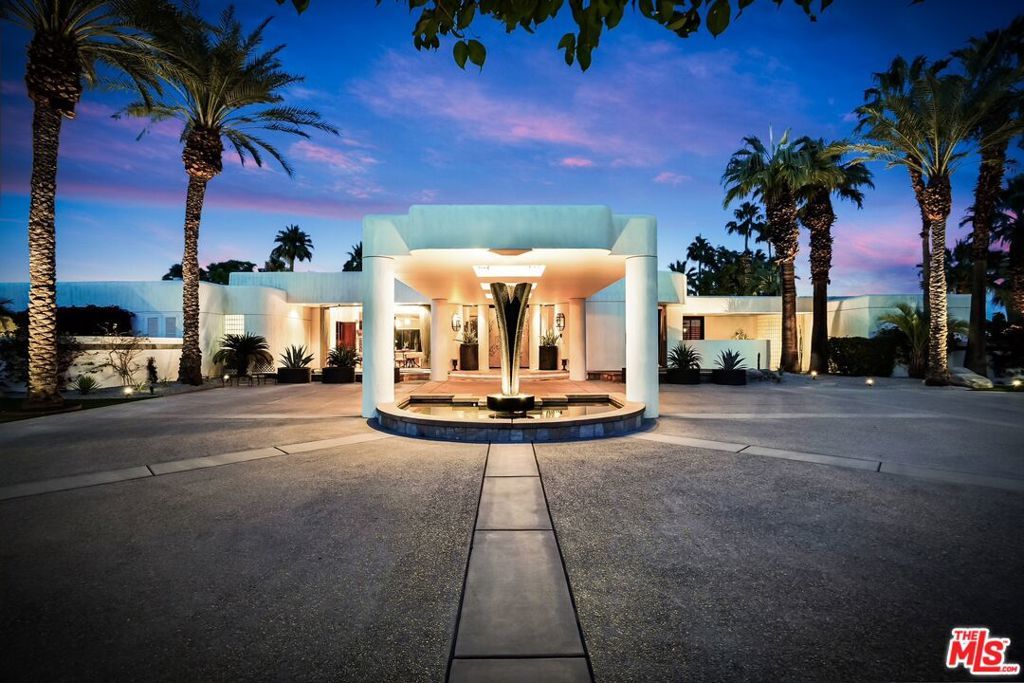 Welcome to a show-stopping estate in the heart of Thunderbird Heights that defines luxury desert living. Expertly built and beautifully designed, this unforgettable 9,265 SQ FT compound sits on approx. 1.2 acres of pristine, meticulously landscaped grounds. The main residence features 2 bedrooms and 5 bathrooms, complemented by a separate 2BD/2BA stand-alone casita for ultimate privacy. From the moment you arrive, the property makes a statement: a circular driveway, fountains, desert gardens, and a dramatic porte-cochre entrance set the tone. Through the double etched-glass doors, grand-scale interiors unfold with soaring ceilings, warm natural materials, and a seamless blend of sophistication and comfort.Every bedroom opens to a private patio, and every detail is thoughtfully executed, from the four-car air-conditioned garage with stretch-limo capacity and epoxy floors, to multiple covered patios, misters, and expansive entertaining areas including a full outdoor kitchen, cabana, bar, and an additional 3/4 bath. The interiors are elegant and expansive, offering a formal living room with fireplace and mahogany coffered ceilings, a custom sunken wet bar, formal dining room with floor-to-ceiling windows, wine closet, family/media room, library, hidden back office, and art studio. The chef's kitchen is exceptional, with double appliances, custom cabinetry, and a full butler's pantry. The detached casita is ideal for guests, featuring its own living room, kitchenette, and two en-suite bedrooms. The oversized primary suite is a true retreat with a sitting area, fireplace, spa access, and dual his-and-hers bathrooms complete with steam shower, jetted tub, multiple walk-in closets, and a private gym or massage space.Outdoors, the property transforms into a private desert oasis with a saltwater pool, waterfalls, two spas, sculpture gardens, and sweeping mountain views. Security cameras cover all three gated entrances, and the home also offers owned solar. A celebrated estate within Rancho Mirage, this property once hosted the "Opening Night" of the historic Thunderbird Country Club during its major renovation with a sit-down dinner for 300 showcasing its unparalleled capacity to entertain. Enjoy private tunnel access to Thunderbird Country Club, the first private golf club in the Coachella Valley, located just moments away. Elegant, iconic, and truly one-of-a-kind this is a home that stays with you.
