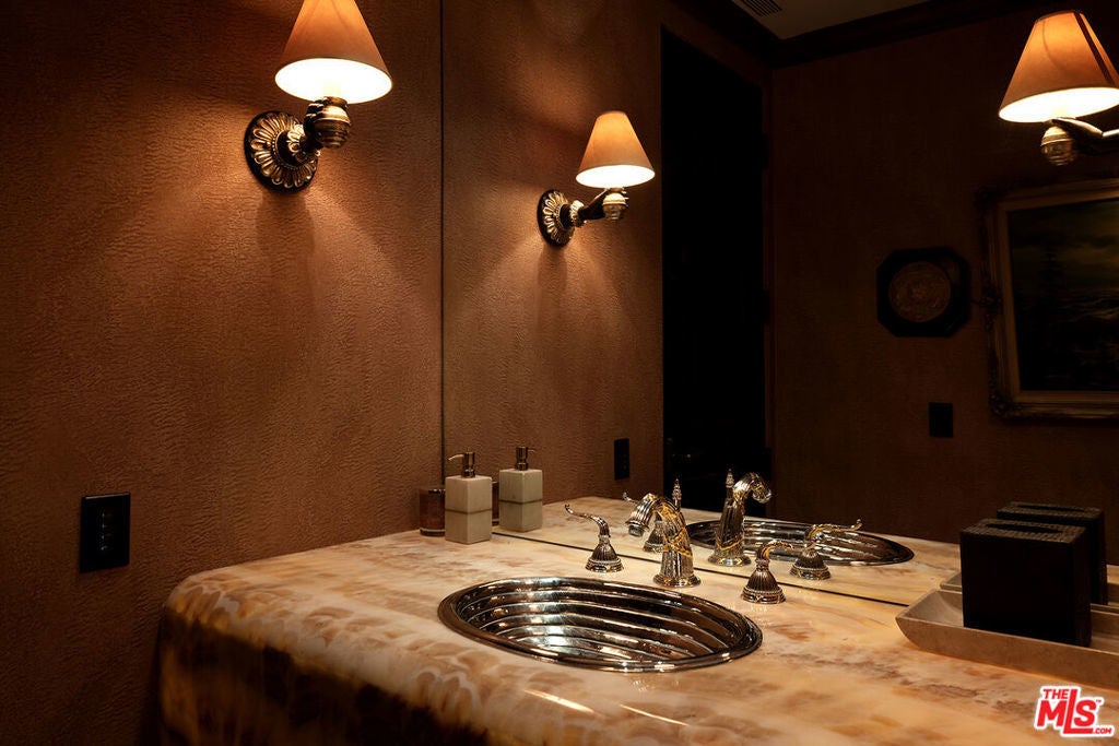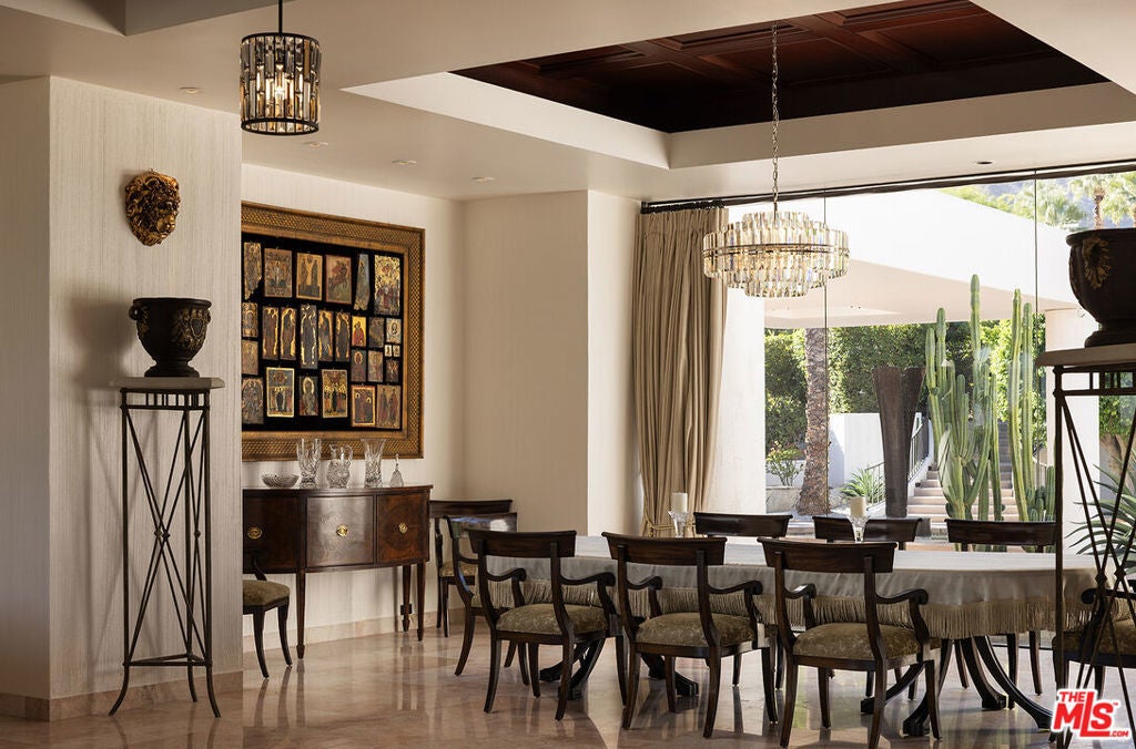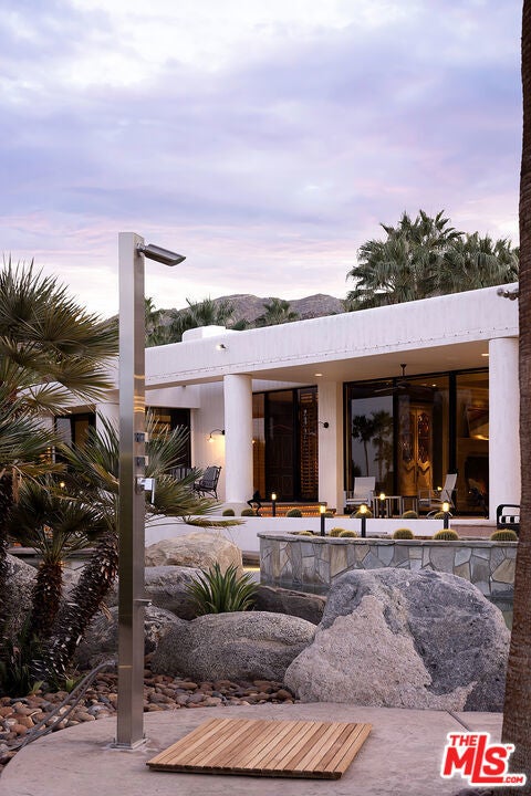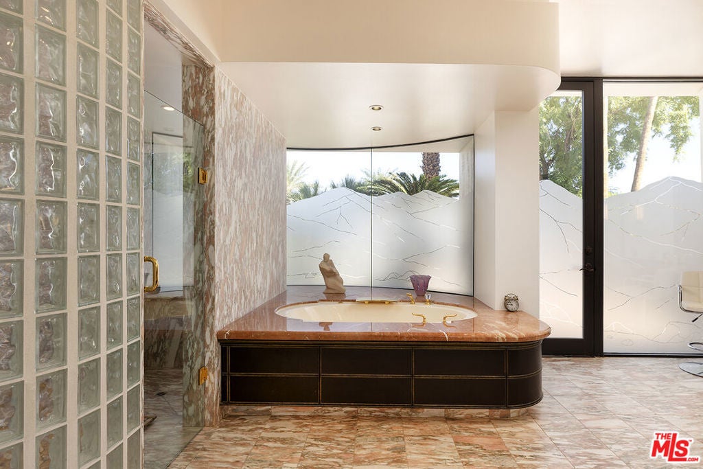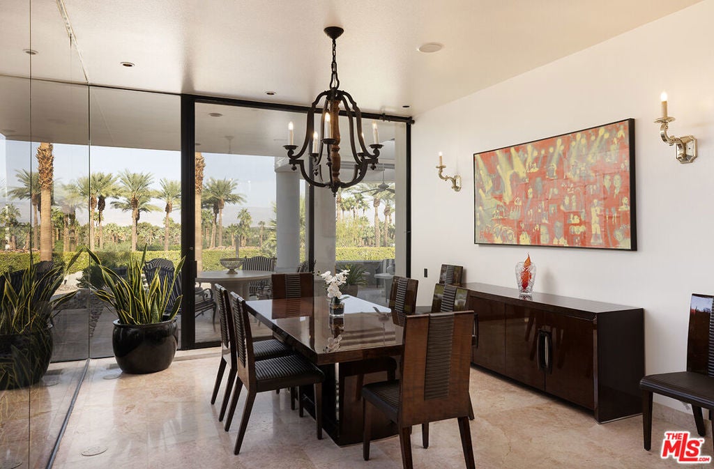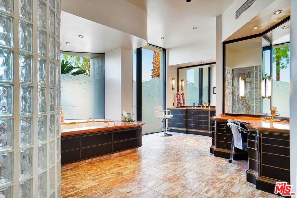 Welcome to a show-stopping estate in the heart of Thunderbird Heights that defines luxury desert living. Expertly built and beautifully designed, this unforgettable 9,265 SQ FT compound sits on approx. 1.2 acres of pristine, meticulously landscaped grounds. The main residence features 2 bedrooms and 5 bathrooms, complemented by a separate 2BD/2BA stand-alone casita for ultimate privacy. From the moment you arrive, the property makes a statement: a circular driveway, fountains, desert gardens, and a dramatic porte-cochre entrance set the tone. Through the double etched-glass doors, grand-scale interiors unfold with soaring ceilings, warm natural materials, and a seamless blend of sophistication and comfort.Every bedroom opens to a private patio, and every detail is thoughtfully executed, from the four-car air-conditioned garage with stretch-limo capacity and epoxy floors, to multiple covered patios, misters, and expansive entertaining areas including a full outdoor kitchen, cabana, bar, and an additional 3/4 bath. The interiors are elegant and expansive, offering a formal living room with fireplace and mahogany coffered ceilings, a custom sunken wet bar, formal dining room with floor-to-ceiling windows, wine closet, family/media room, library, hidden back office, and art studio. The chef's kitchen is exceptional, with double appliances, custom cabinetry, and a full butler's pantry. The detached casita is ideal for guests, featuring its own living room, kitchenette, and two en-suite bedrooms. The oversized primary suite is a true retreat with a sitting area, fireplace, spa access, and dual his-and-hers bathrooms complete with steam shower, jetted tub, multiple walk-in closets, and a private gym or massage space.Outdoors, the property transforms into a private desert oasis with a saltwater pool, waterfalls, two spas, sculpture gardens, and sweeping mountain views. Security cameras cover all three gated entrances, and the home also offers owned solar. A celebrated estate within Rancho Mirage, this property once hosted the "Opening Night" of the historic Thunderbird Country Club during its major renovation with a sit-down dinner for 300 showcasing its unparalleled capacity to entertain. Enjoy private tunnel access to Thunderbird Country Club, the first private golf club in the Coachella Valley, located just moments away. Elegant, iconic, and truly one-of-a-kind this is a home that stays with you.