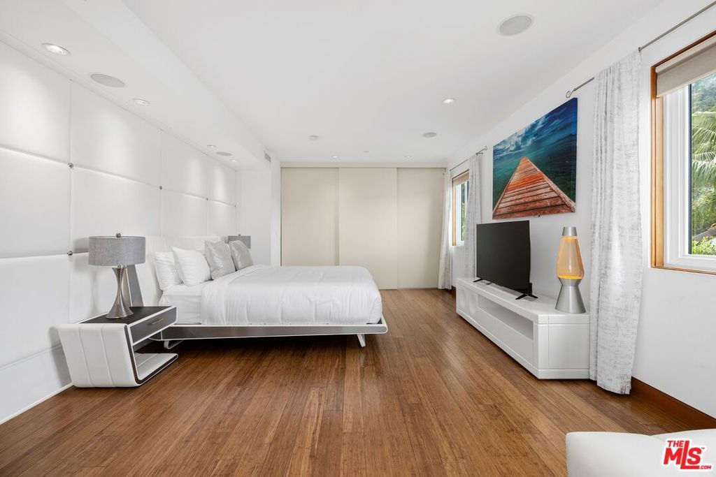 Welcome to 2437 Apollo Dr, a luxurious retreat nestled in the exclusive Hollywood Hills community of Mount Olympus. This Spectacular Architectural Home Designed By Award Winning Architect features seamless indoor-outdoor living spaces, panoramic views, and unparalleled amenities.Step inside to discover a sprawling main level featuring a spacious living area, perfect for hosting gatherings, along with a large living room complemented by a cozy fireplace ideal for intimate evenings with loved ones. Adjacent, the gourmet kitchen awaits, a chef's dream with top-of-the-line appliances, custom cabinetry, and a generous island for culinary adventures.Retreat to the lavish primary suite offering a tranquil oasis complete with a spa-like ensuite bathroom and a private balcony overlooking the picturesque hillsides.Step outside to your own private oasis an outdoor entertaining area featuring a heated pool, perfect for year-round enjoyment. Entertain in style with multiple outdoor lounging areas, including a spacious patio, offering panoramic views.Conveniently located just moments away from the vibrant energy of West Hollywood and the Sunset Strip, yet secluded enough to provide a peaceful sanctuary, 2437 Apollo Dr offers the perfect balance of luxury, privacy, and convenience.