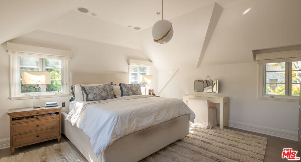 ELEGANT SUNSET SQUARE TRADITIONAL GATED & PRIVATE. This gorgeous, fully updated and dialed-in property has graced the pages of Architectural Digest and was recently home to an iconic actor and music legend. Classic lines and generous scale define every space, with a Paul Williams inspired floor plan offering exceptional flow and timeless elegance throughout. The first floor features an inviting entry foyer leading to the main living areas. The spacious living room boasts coved ceilings, bay windows, and French doors flanking a stunning central fireplace. Double entry doors open to a cozy den/library/media room. The formal dining room includes a built-in hutch and a door leading to the butler's pantry, which connects to the chef's kitchen. The kitchen offers a large center island, top-of-the-line appliances, a built-in dining banquette with expansive picture windows overlooking the gardens, a built-in computer station, and a dry bar. Completing this level are two powder rooms and a large laundry/mud room.Upstairs, the expansive primary suite features vaulted ceilings, walk-in and secondary closets, and beautiful views. The primary bath includes a soaking tub, double sinks, separate shower, and private water closet. Two additional bedroom suites each offer generous closets and beautifully updated baths. The fully hedged and private backyard is truly sensational, featuring a semi-covered living and dining terrace with a built-in BBQ, a sparkling pool with fountains, and a stunning cabana equipped with a full sound and video system, wet bar, refrigerator, and island perfect for entertaining. Beyond the pool, a fire pit leads to the two-story guesthouse (with a separate address) with vaulted ceilings, a full kitchen with island, a full bath, and an upstairs bedroom. A rare and remarkable offering combining exceptional style, condition, and value just blocks from the world-class amenities of the Sunset Strip, West Hollywood, and Runyon Canyon hiking trails.