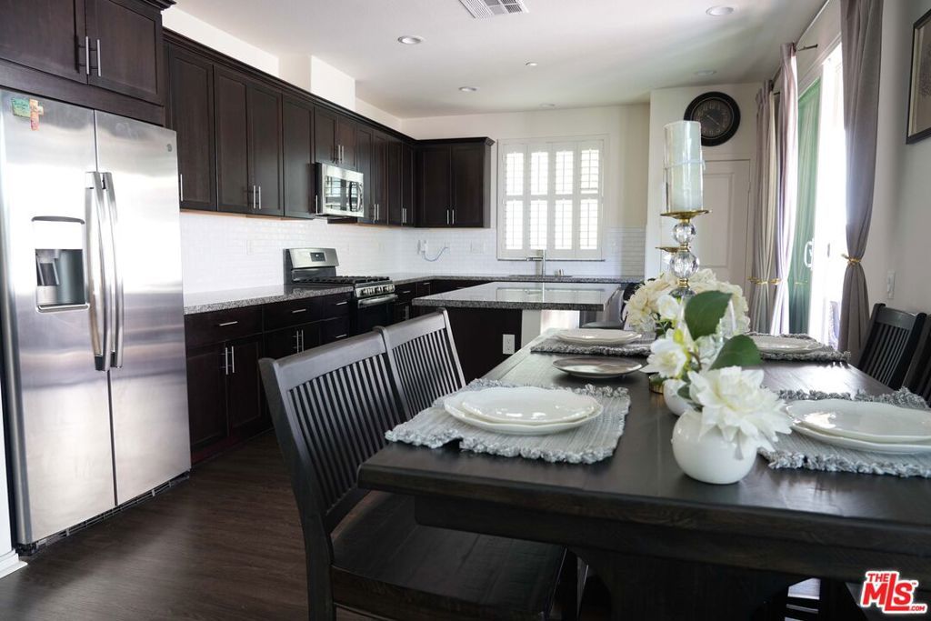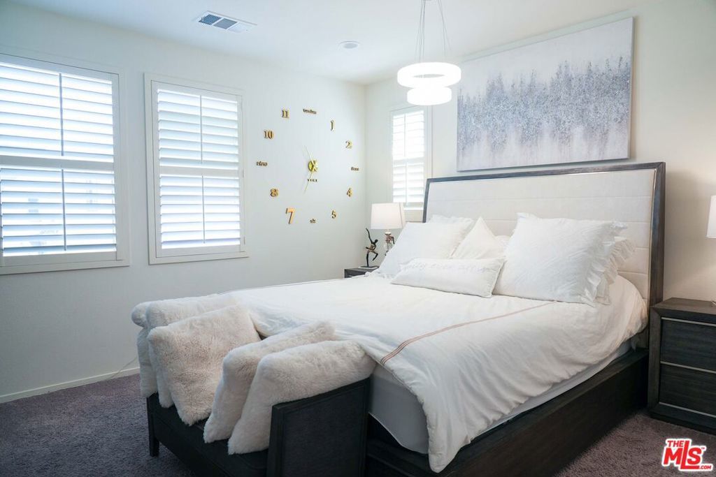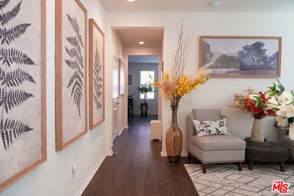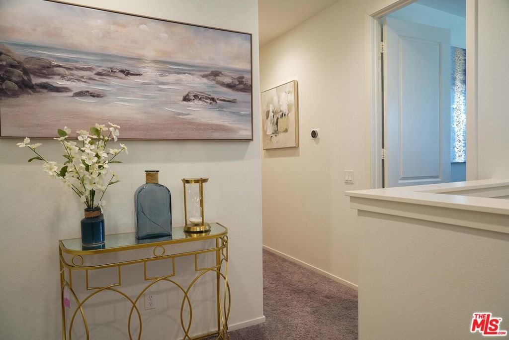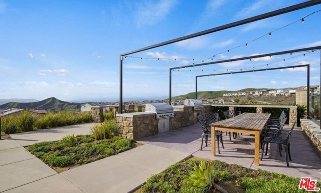 Welcome to this stunning Skyline Sola home, where modern elegance meets functional design. This model-perfect two-story residence offers 3 bedrooms, 2.5 bathrooms, and a solar energy system, making it both stylish and efficient. Designed with an open-concept layout, the home is perfect for entertaining. The gourmet kitchen is a chef s dream, featuring quartz countertops, a striking backsplash, GE stainless steel appliances, ample cabinetry, and pantry. Large sliding doors lead to a beautifully manicured backyard, creating seamless indoor-outdoor living. The primary suite is a light-filled retreat with recessed lighting, a walk-in closet, and a spa-like ensuite with dual sinks and an oversized shower. Upstairs, you ll also find a spacious laundry room, two additional bedrooms, and a flexible entry area on the first floor, that's ideal for a home office. This enclosed two-car garage offers direct access to the home, making it easy to bring in groceries or other items. It features a tiled floor, full air conditioning, and an electric vehicle charging station. With its versatile design, this space can effortlessly be transformed into a stylish home office or additional living quarters, providing both functionality and comfort. This home is just steps from The Lookout, a premier community space featuring a playground, clubhouse, sparkling pool and spa, kid s wading pool, splash pad, BBQ area, and a state-of-the-art glass-enclosed gym all with breathtaking valley views. Enjoy access to scenic hiking trails, a brand-new shopping center, and easy freeway access via Golden Valley and Whites Canyon. Don t miss out on this exceptional home in one of Santa Clarita s most sought-after communities schedule a showing today!