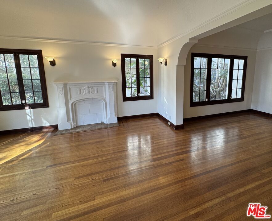 Timeless 1928 Spanish Colonial Revival in Hancock Park! This spacious lower residence in a beautifully maintained 4-unit building blends vintage character with everyday comfort. Featuring 2 bedrooms, 2 baths, and approx. 2,000 sq ft of living space, the home is filled with natural light, arched doorways, hardwood floors, original built-ins and a decorative fireplace. The unit features in-unit laundry, stackable washer & dryer. The classic kitchen includes all appliances including; dishwasher, fridge & stove/oven. You'll love the abundant closet space throughout, high ceilings, and classic period details. Includes one-car private garage. Located on a picturesque tree-lined street, moments from La Brea cafes, boutiques, and restaurants. Available Immediately.