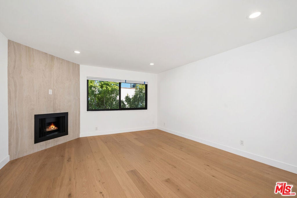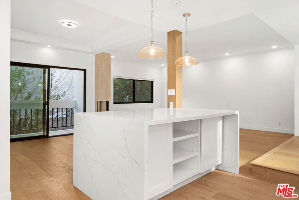 Behind private gates in one of Beverly Hills' most desirable locations, this newly remodeled contemporary townhome offers modern luxury, privacy, and exceptional convenience. Fully updated in 2025, the home features an open-concept living area with wide-plank oak floors, a stone fireplace, and a custom wet bar. The gourmet kitchen showcases a waterfall quartz island, designer cabinetry, and premium appliances.Upstairs, the bright primary suite includes a walk-in closet and a spa-inspired bathroom with Jacuzzi tub, oversized shower, and double vanity. Three additional spacious bedrooms offer flexibility for families, guests, or home offices.Rare amenities include three gated, covered parking spaces with direct unit access and an EV charger, plus access to a resort-style pool and spa. Located within the Beverly Hills Unified School District and moments from dining, shopping, La Cienega Park, and Cedars-Sinai. Turnkey luxury living in a prime Beverly Hills location.