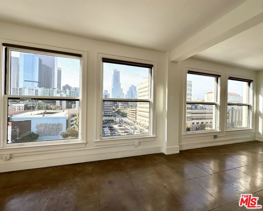 Experience iconic Downtown Los Angeles living in this bright, industrial-style corner loft located in the historic Higgins Building, a registered federal landmark with Mills Act tax benefits - saving owners up to 75% on property taxes. This unique unit offers dual exposure with oversized windows on both the northwest and southwest walls, flooding the space with natural light and showcasing panoramic skyline views and stunning sunsets. Soaring 11-foot ceilings, polished concrete floors, and modern track lighting enhance the open, airy feel. The fully remodeled kitchen features sleek new cabinetry, a designer faucet, premium stainless steel appliances, and Neolith countertops - a high-performance surface favored by luxury designers for its durability and refined aesthetic. The bedroom includes a custom vertical wood slat accent wall and a sliding panel that opens to a spacious walk-in closet, blending architectural elegance with functionality. The updated bathroom features a new vanity, faucet, storage cabinet, and a bidet for added comfort. Enjoy panoramic city views from the rooftop BBQ and dining terrace, ideal for hosting guests or relaxing under the stars. The building offers on-site security for peace of mind and is located just one block from the Metro's brand-new Historic Broadway Station, providing seamless access to multiple transit lines and making commuting across Los Angeles easier than ever. Steps from Little Tokyo, Grand Central Market, Grand Park, Redbird, Blue Bottle Coffee, Badmaash, and the LAPD dog park, this loft places you in the heart of DTLA's vibrant cultural, culinary, and entertainment scene. Easy access to museums, concert halls, and public transportation completes the urban lifestyle. HOA dues include water, trash, sewage, and general liability/fire insurance. Residents are responsible for electricity and internet. Secured parking is available at two nearby garages - one directly adjacent to the building and another just across the street.