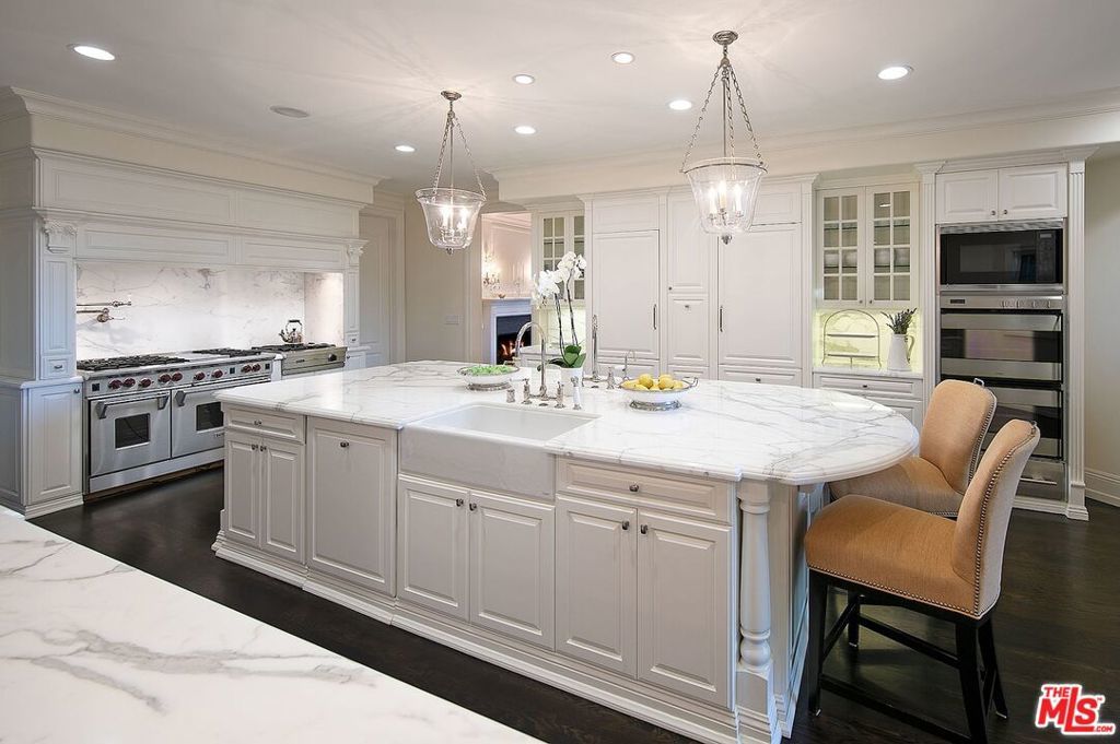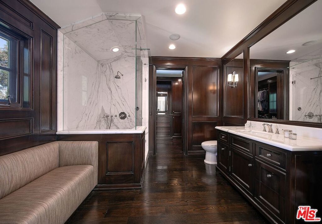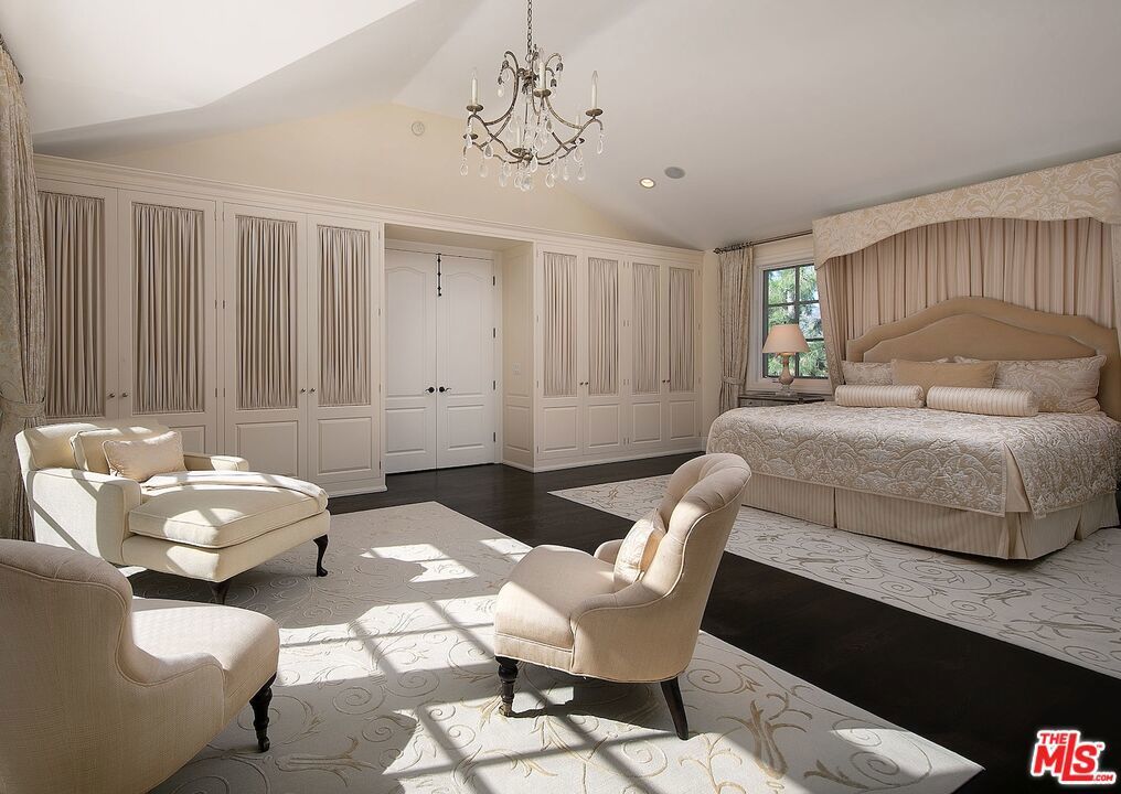Holmby Hills Gem, Traditional Estate - redesigned and furnished by Steve and Brooke Giannetti. Set behind high gates on just under 1/2 acre of manicured grounds. Soaring 2-story entry hall, with floating staircase. Formal living room with fireplace, wood paneled media room with incredible bar area. All public rooms open via French doors to grassy yard and pool. Gourmet kitchen with adjacent family room. Exquisite primary suite with high ceilings, double marble baths with incredible moldings and large walk-in closets. 5 additional bedrooms. Large 3 car garage. A tree top view - rare for Holmby Hills. Must see! Shown only to prequalified buyers.