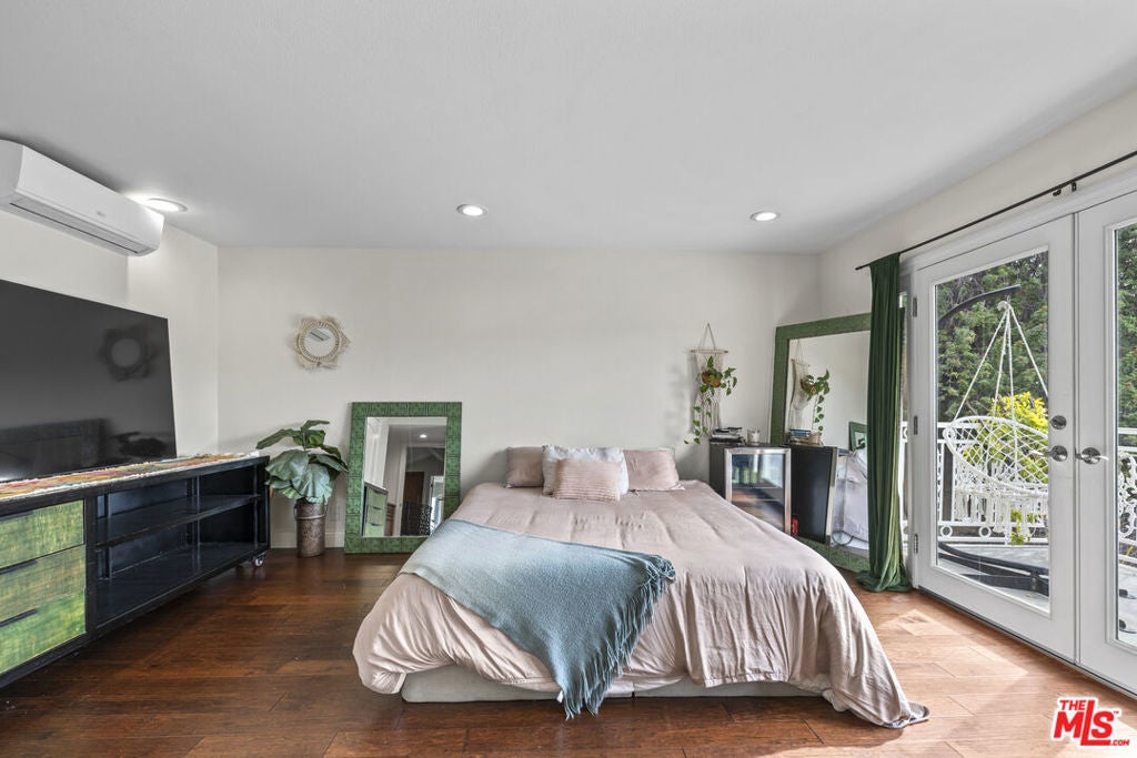 Tucked at the end of a peaceful cul-de-sac in Lake Encino, this home combines warmth, comfort, and incredible Valley views. Step inside to a dramatic two-story entry with a curved staircase and rich walnut floors that carry throughout. The open layout flows easily from the chef's kitchen with a large island, walk-in pantry, and top-of-the-line Stainless Steel Thermador appliances into the family room with a cozy fireplace. French doors open from both the dining and living rooms to a backyard made for entertaining, complete with a pool, spa, and sweeping views across the Valley. There's also a main-level office/bedroom with French doors that open to the yard perfect for working from home. Upstairs, the primary suite feels like a retreat with its custom walk-in closet, spa-style bathroom, and a private balcony to take in the views. Two additional bedrooms, each with balcony access, complete the second floor. The home also includes solar panels (paid off in full at close of escrow and transferred to buyer), providing energy efficiency and long-term savings. Residents enjoy access to the community tennis and sport courts, maintained by the HOA. The home sits just minutes from Braemar Country Club and Ventura Blvd.