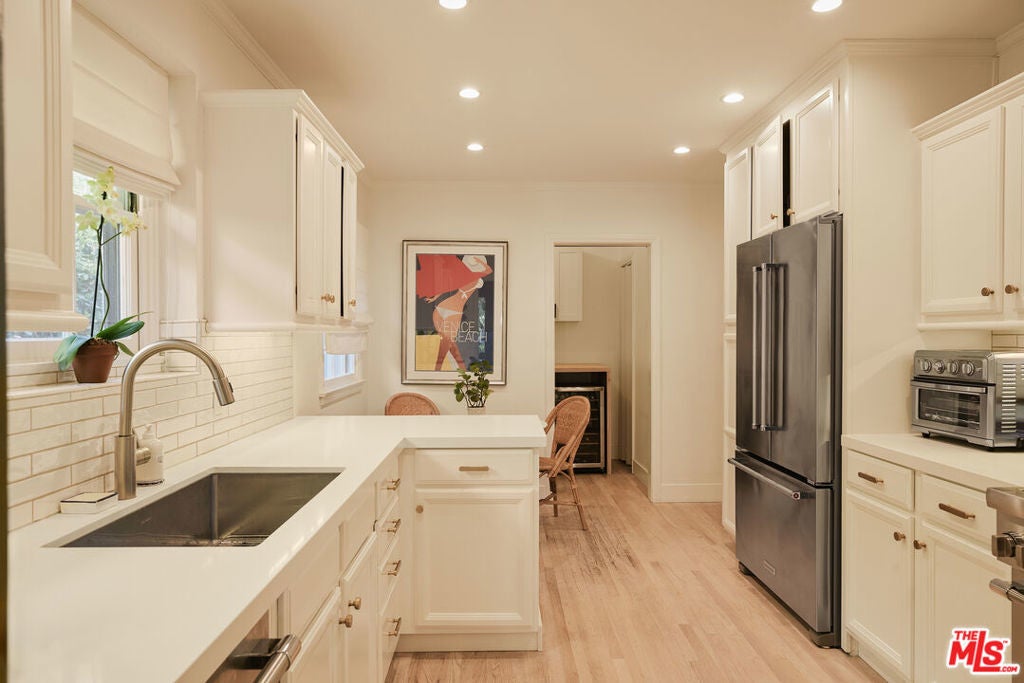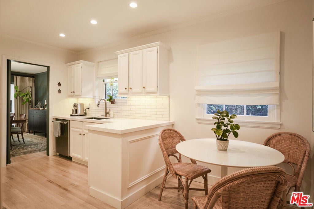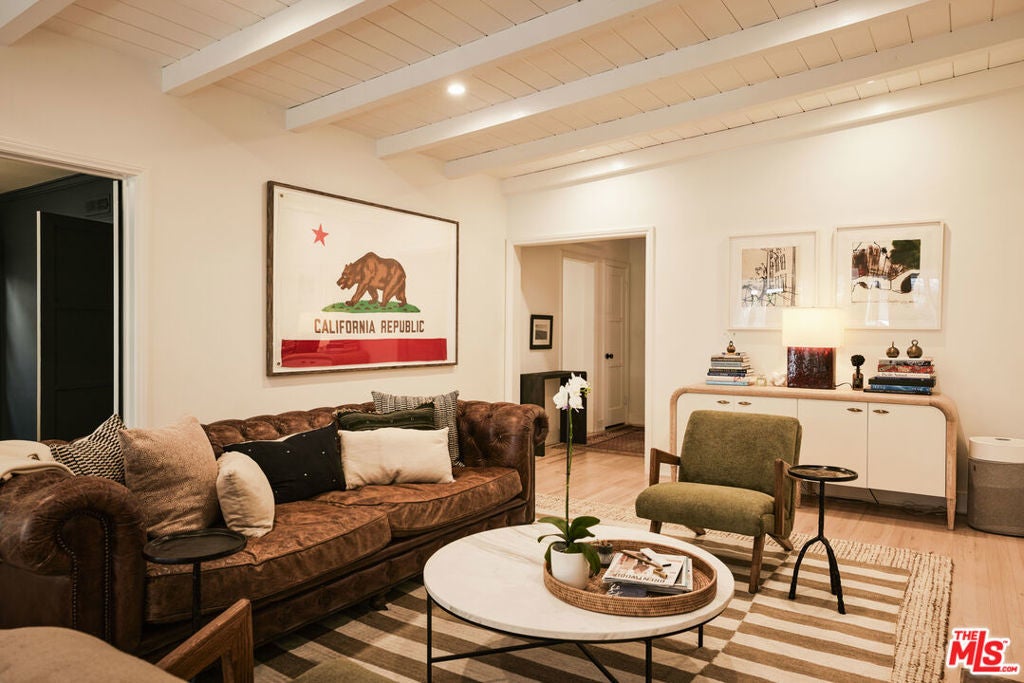 Located in the highly sought-after Brentwood Flats, this inviting home blends classic California charm with everyday living. Behind lush hedges and ivy-covered walls, it offers a bright, beautifully updated retreat with indoor-outdoor flow. Inside, vaulted beamed ceilings and sunlit spaces create a relaxed yet refined atmospherefrom the cozy living area to the elegant dining room wrapped in deep, sophisticated tones. The crisp white kitchen features modern appliances and an intimate breakfast nook, while the serene bedrooms provide a peaceful escape filled with natural light. The private backyard feels like an oasis, complete with lemon trees and multiple seating areas perfect for relaxing or entertaining. Perfectly positioned near Brentwood's favorite shops, restaurants, and parks, this home is both convenient and full of character - a true gem that embodies the easy, elevated lifestyle of the Westside.