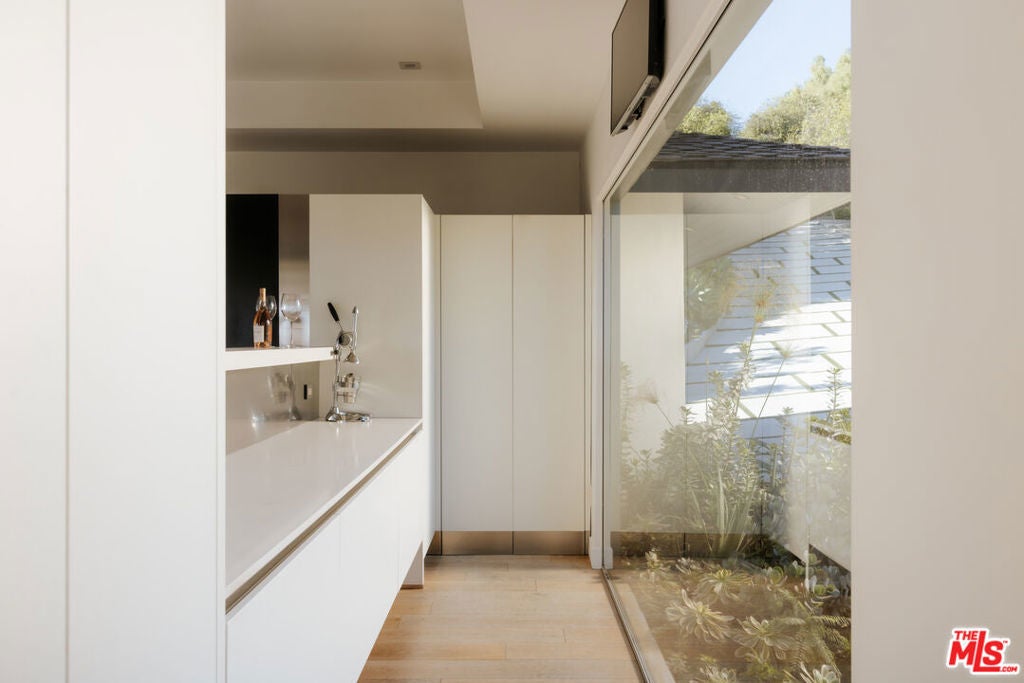 A rare and exceptional opportunity to own a private gated mid century retreat at the end of a quiet cul de sac with sweeping city to ocean views. Originally designed in 1958 by noted architect Thornton Ladd, this residence captures the essence of classic California modernism with high ceilings walls of glass and an open flow ideal for world class entertaining. The main house features expansive living spaces with gleaming hardwood floors a formal dining area and beautifully updated baths. The kitchen is equipped with Viking and Sub Zero appliances and opens to the views and outdoor areas. The luxurious primary suite includes a limestone bath and shower with refined contemporary finishes. The property sits on an extraordinary 1.35 acre promontory offering complete privacy and a pool surrounded by a large flat yard framed by dramatic panoramic vistas. A true zen like environment with a timeless architectural pedigree this home presents a unique and valuable opportunity in a premier location.