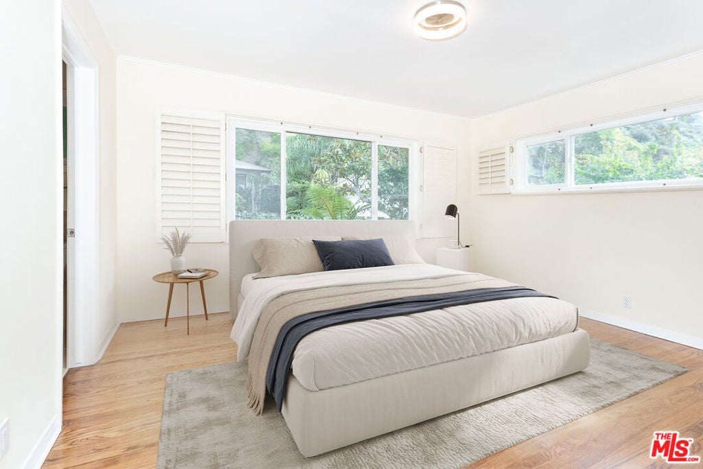 Introducing 1129 Roscomare Road, an updated 3-bedroom, 3-bathroom home in lower Bel Air. Enjoy lushly landscaped grounds, hardwood floors, statement fireplace and freshly renovated kitchen. The layout includes a spacious great room including dining room, kitchen complete with breakfast area overlooking backyard, and charming den with wet bar. The primary suite has built-ins and a renovated bath with a relaxing soaking tub. Two additional bedroom are sizable and full of natural light. Family room can be 4th bedroom - closet and bathroom attached. Close to shopping and dining in Westwood, Brentwood, and Beverly Hills. Experience convenience and elegance at 1129 Roscomare Road! (Minimum of 1 year lease)
