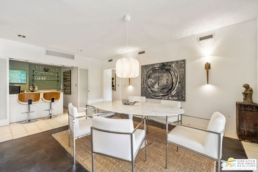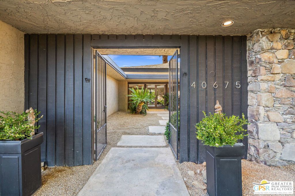 A Rare Architectural Offering designed by Gin Wong! Set behind the gates of Thunderbird Terrace and adjacent to the historic Thunderbird Country Club, this architecturally unique residence sits on just over half an acre and offers exceptional potential in one of Rancho Mirage's most established luxury enclaves. The home reflects the bold modernism that defined the architect's career. Wong helped shape postwar California architecture with work that includes the LAX Theme Building, CBS Television City, the Union Oil Center, and Beverly Hills' iconic Union 76 station. During his tenure with Pereira & Associates, he also contributed to San Francisco's landmark Transamerica Pyramid. His influence is evident here through the home's clean modernist lines, natural stone elements, and distinctive pyramidal roof. A private gated courtyard introduces the layout and sets the stage for a light-filled interior. Inside, the main living areas feature walls of glass overlooking the pool and gardens, cove lighting, and a dramatic floor-to-ceiling stone fireplace. A hidden wet bar offers a nod to the home's original entertaining style. The kitchen and family room connect seamlessly, opening to the outdoors through sliders and offering a convenient pass-through to the patio ideal for al fresco dining. The ensuite primary retreat enjoys tall ceilings, direct garden access, and an indoor-outdoor bath design with separate tub and shower. Two guest suites, each with their own outdoor connection, provide excellent separation and privacy. Additional features include generous storage, a laundry room, and a three-car garage. A compelling opportunity to restore or reimagine a Gin Wong designed property with strong architectural bones, expansive grounds, and a premier location within Thunderbird Terrace.