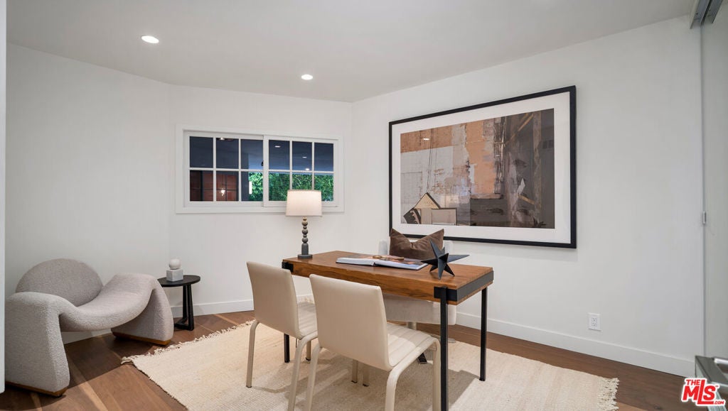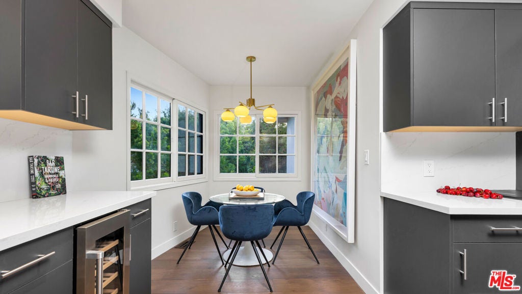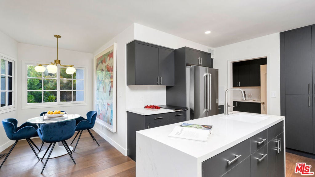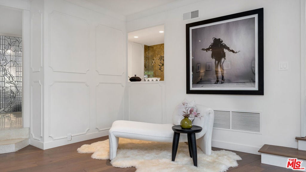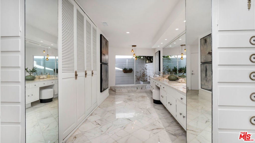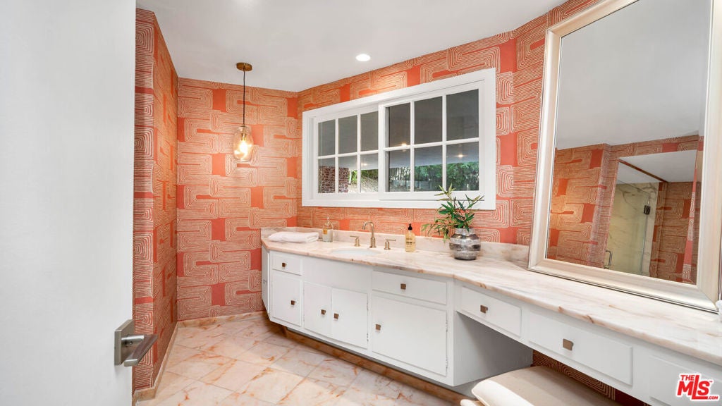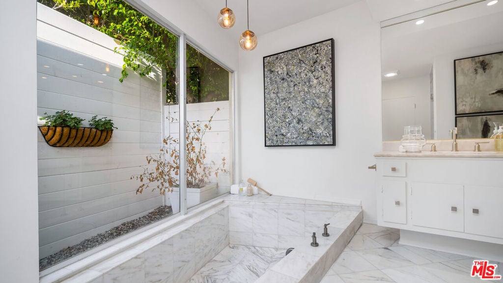 Tucked into one of Angelo Drive's most coveted enclaves, this masterfully renovated mid-century residence blends classic 1960s architecture with elevated contemporary upgrades, thoughtfully integrated to preserve the home's mid-century character. Set on a secluded drive just moments above Sunset Blvd, the property offers unmatched privacy and tranquil treetop outlooks.Beautifully reimagined, the approx. 3,400 SF floor plan includes 4 bedrooms and 4 refined baths, with expansive, sun-filled living spaces framed by restored French doors and oversized windows. A deep wraparound balcony connects the living room, dining room, and primary suite, creating a seamless indoor-outdoor flow. The sun-washed chef's kitchen features a generous stone-topped island, premium stainless appliances, custom cabinetry, and a sunlit breakfast nook. The primary suite opens directly onto the terrace and enjoys serene garden views and a spa-inspired bath with dramatic stone finishes, large walk-in shower, and a deep step-down soaking tub. Curated upgrades throughout include new flooring, renovated bathrooms, designer lighting, refreshed finishes, and improved systems. The grounds include mature landscaping, a spacious terrace for dining and lounging, and a wide motor court with covered parking. A refined, mid-century retreat in one of BHPO's most discreet pockets-offering privacy, architectural charm, and effortless access to Beverly Hills, Holmby Hills, and top-rated Warner Avenue Elementary.