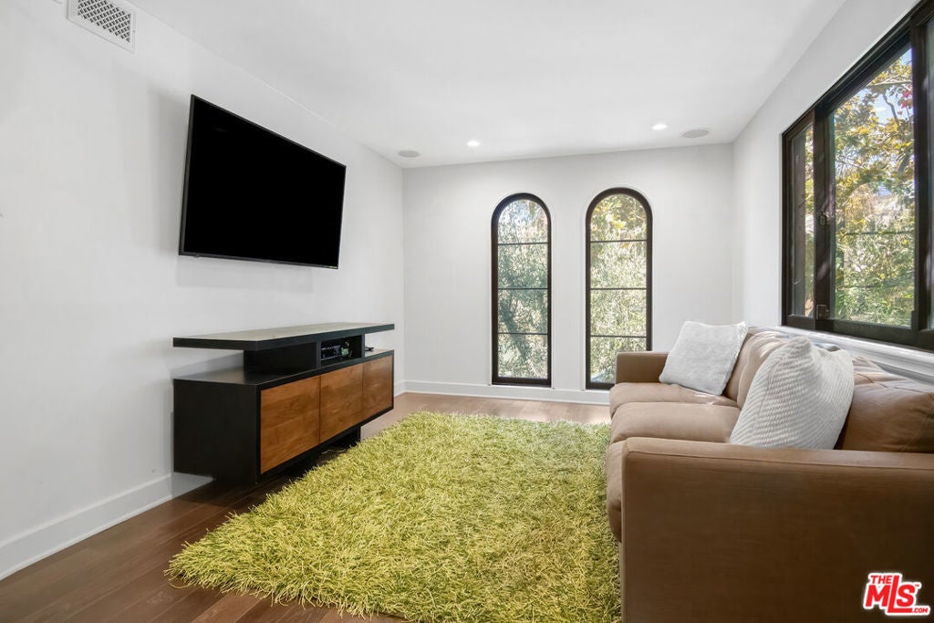 Experience this beautifully remodeled Mediterranean villa in Century City. With over 4,100 square feet, this home combines classic elegance with modern style and is available for lease. The open, flowing layout features graceful archways and ensures both accessibility and privacy throughout. Enjoy four spacious en suite bedrooms, including a master retreat with a Carrera marble bath, walk-in closet, fireplace, and sitting area. The chef's kitchen showcases Calcutta marble counters, a JennAir 6-burner stove with a double oven, and a double fridge/freezer, leading to a stylish family room with surround sound and sliding doors to the backyard. Perfect for entertaining, the split-level living room has vaulted wood beam ceilings, a full bar, a pool table, track lighting, and surround sound. Additional features include new bathroom fixtures, ample closets, a skylight for abundant natural light, and a Nest-controlled climate system. Outside, find a private oasis with a waterfall pool, spa, and deck, plus double balconies with street views. Located in the Westwood Charter School district and close to Beverly Hills, Westfield Mall, and Holmby Park, this home is ideal for those in the entertainment industry or anyone seeking the vibrant Hollywood lifestyle. Proximity to renowned shopping and dining enhances its appeal. Fireplaces are decorative.