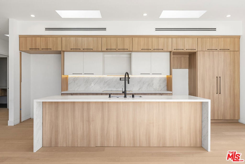 Welcome to this thoughtfully expanded and exquisitely designed modern residence offering approximately 2,900 square feet of refined luxury and comfort. Enhanced by multiple 6" architectural bump-outs this home showcases added dimension, space and eye-catching style throughout. At the heart of the home, the chef's kitchen is a true centerpiece featuring a 48" panel-ready refrigerator, built-in island mini fridge, custom cabinetry and a striking 10-foot Taj Mahal island with dramatic waterfall edges perfect for entertaining in elevated style. The spa-inspired primary suite offers a serene retreat complete with a luxurious bath, elegant finishes and a private toilet room. Skylights throughout bathe the interiors in natural light while expansive windows offer breathtaking 270-degree panoramic views from the hills of Bel Air to the skyline of Downtown Los Angeles. Additional highlights include: Full security camera system, Multi Zoned HVAC with custom controls for personalized comfort, smooth stucco exterior, rich hardwood flooring throughout and built-in 5.1 surround sound system. The backyard's upper-level landing presents an ideal opportunity for a pool or lounge area to maximize the panoramic city views while the expansive 400-square-foot deck above the garage creates a perfect space for entertaining and gatherings. Unbeatable location - Just minutes from the new Whole Foods, Trader Joe's and only 5 minutes from vibrant Downtown Culver City. Explore local hotspots like Erewhon, Salt & Straw, The Culver Steps, Philz Coffee, Laurel Grill, The Culver Hotel, Destroyer, Vespertine and many more. Nearby West Adams serves up an acclaimed culinary scene with Cento Pasta, Miz La La, Alta, Chulita and Highly Likely Cafe. Local favorites such as Hilltop Coffee, Jon & Vinny's and Simply Wholesome are right around the corner. Enjoy outdoor adventures on the 13-mile Park-to-Playa bike trail including access to 401 acres of Kenneth Hahn State Park or explore neighborhood gems like the historic Helms Bakery, Pasta Sisters and the dynamic Platform. With easy access to the Expo and Crenshaw Metro lines plus direct routes to LAX, you're seamlessly connected. All of this in a centrally located neighborhood just 5 minutes to Culver City, 15 minutes to Downtown LA and 20 minutes to the beach.