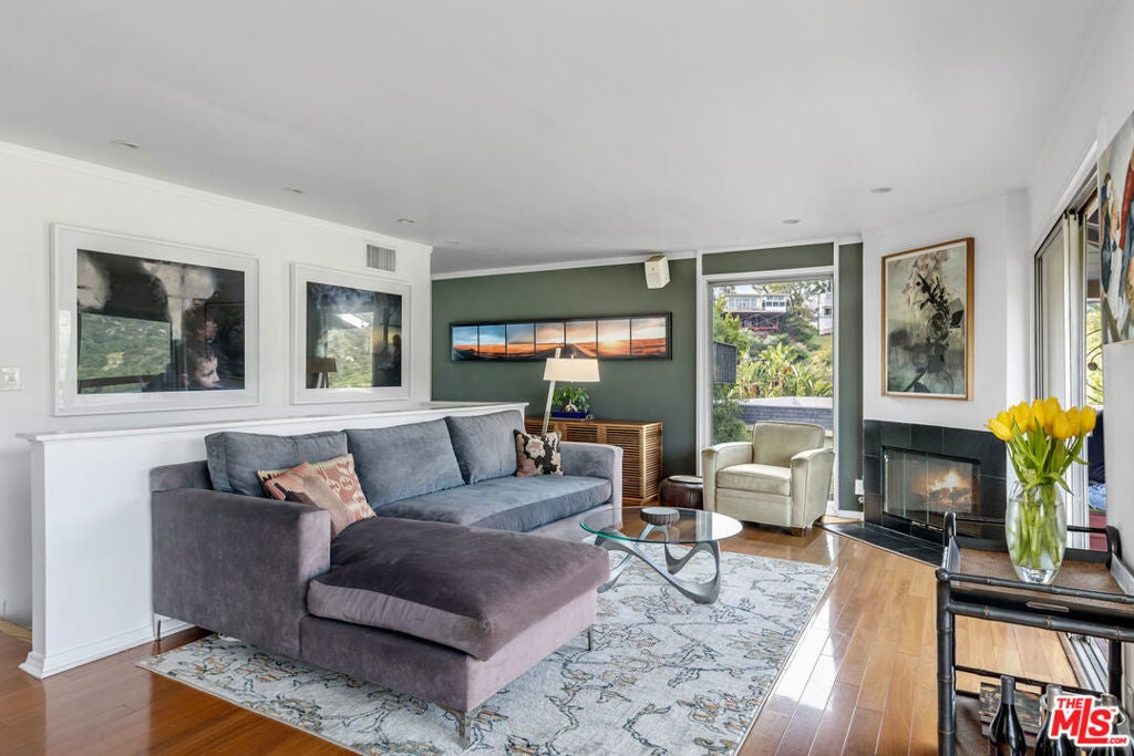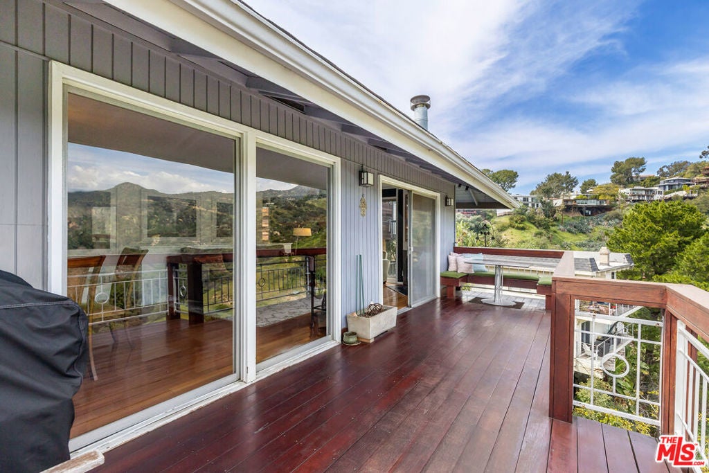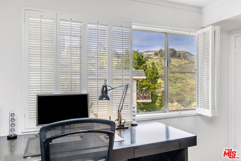 Privacy, views and great architecture; it's all here at this light-filled Mid Century in Beachwood Canyon. The entrance level offers an open floor plan with living and dining spaces opening to a great entertaining deck, and expansive views of the Hollywood Sign, Griffith Park, the Griffith Observatory and endless wildlife. The spacious kitchen includes an island with seating, granite counters, stainless steel appliances and abundant cabinetry. A fireplace in the living room gives you all the more opportunity to gaze out at the vistas. This floor also includes powder room and laundry closet. Downstairs are two bedrooms, including a spacious primary suite that has the same dramatic views and its own deck. The primary also has a spacious walk-in closet and well appointed bathroom including dual vanities, stone counters, custom cabinets, freestanding tub and luxurious dual-headed shower. The secondary bedroom is also spacious with its own walk in closet. Amazing location on a quiet cul-de-sac, with great access to the Beachwood Cafe, Beachwood Market, the Franklin Village and the entirety of Griffith Park. Property has dual zone HVAC, electric car charging and abundant storage. Can also be rented partially furnished. Easiest route is Beachwood to Westshire.